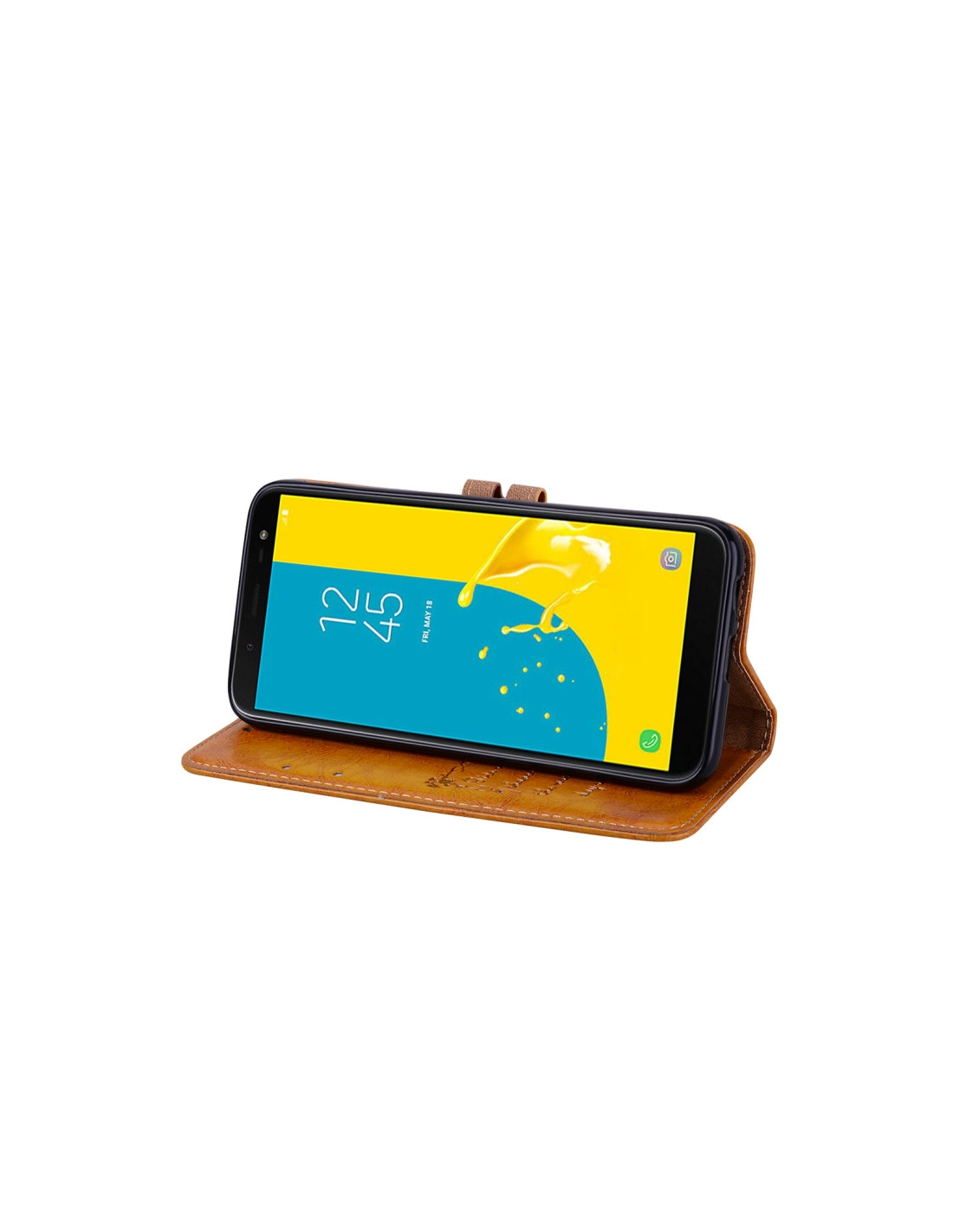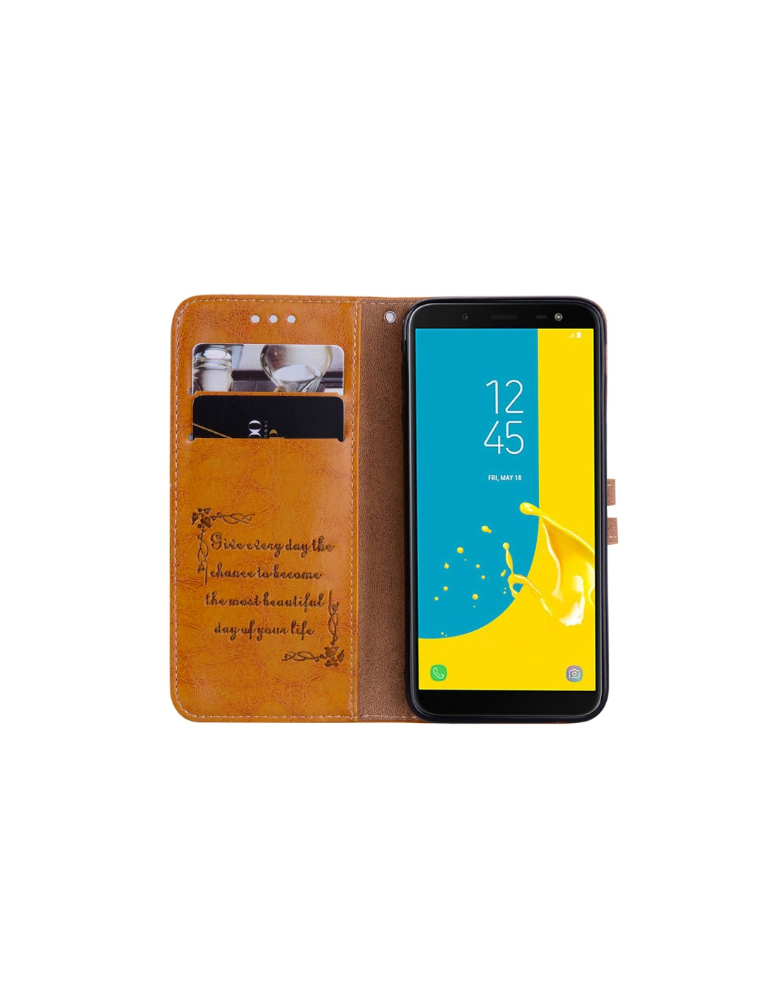 Cover a libro in pelle per Galaxy J6 EU 2018 con scomparti per carte e portafoglio integrato.