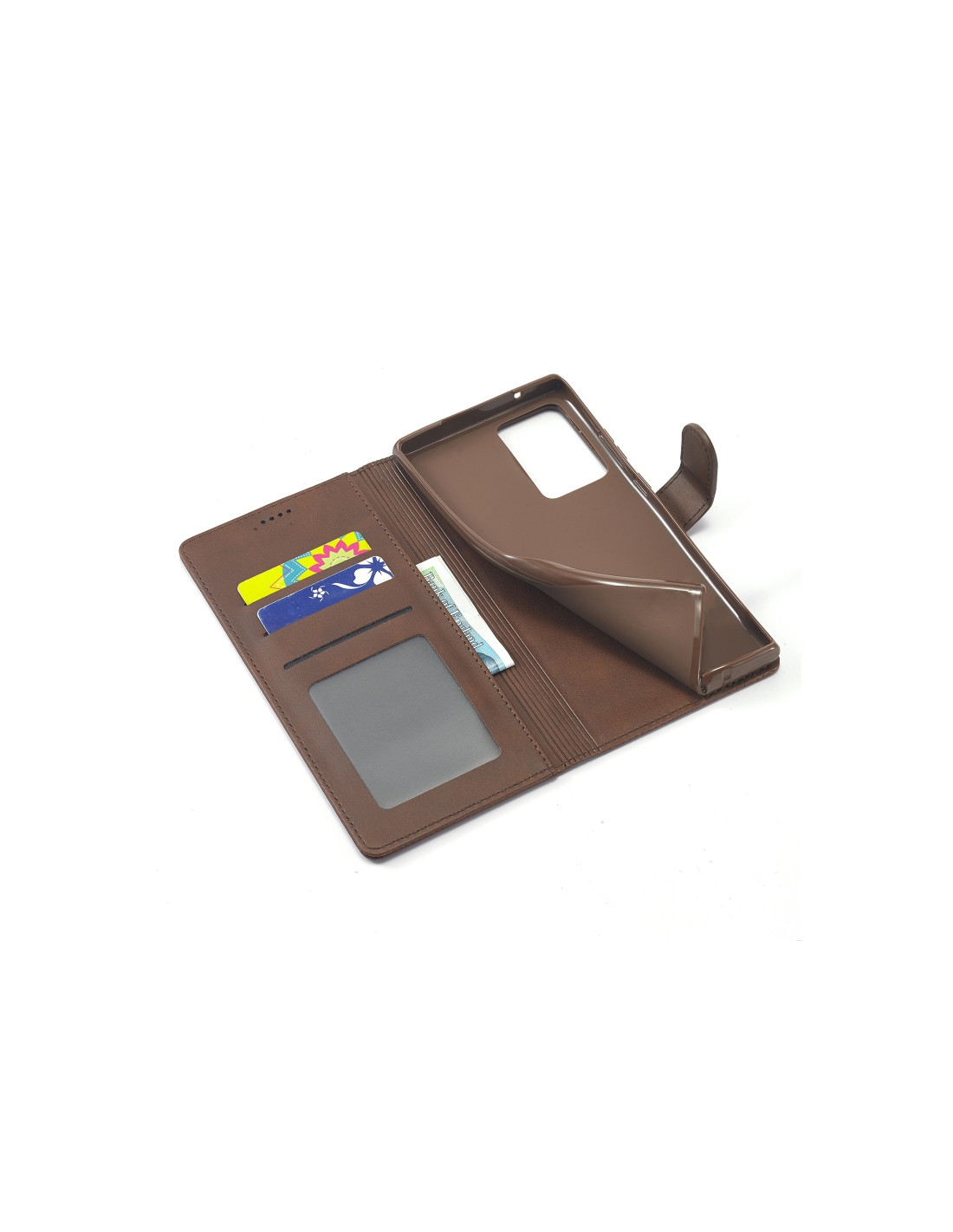 SamsungLa cover a flip in pelle PU per Samsung Galaxy Note 20 Ultra combina eleganza e praticità in un unico accessorio. Realizzata con una texture in vitello di qualità, offre un design sofisticato e un grip confortevole.
