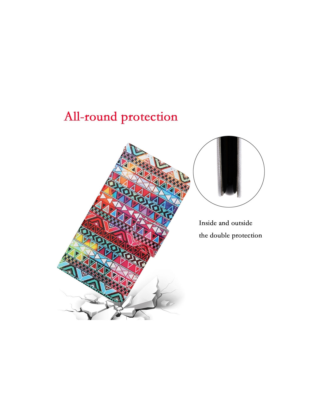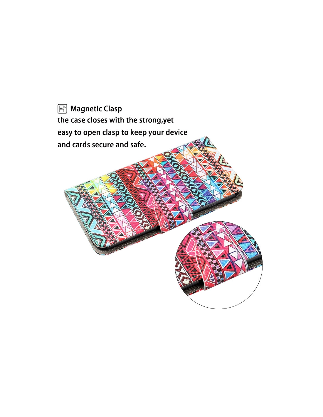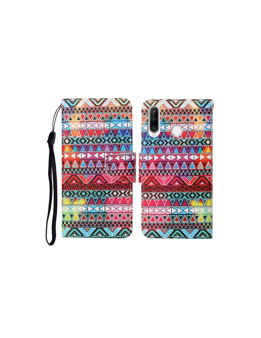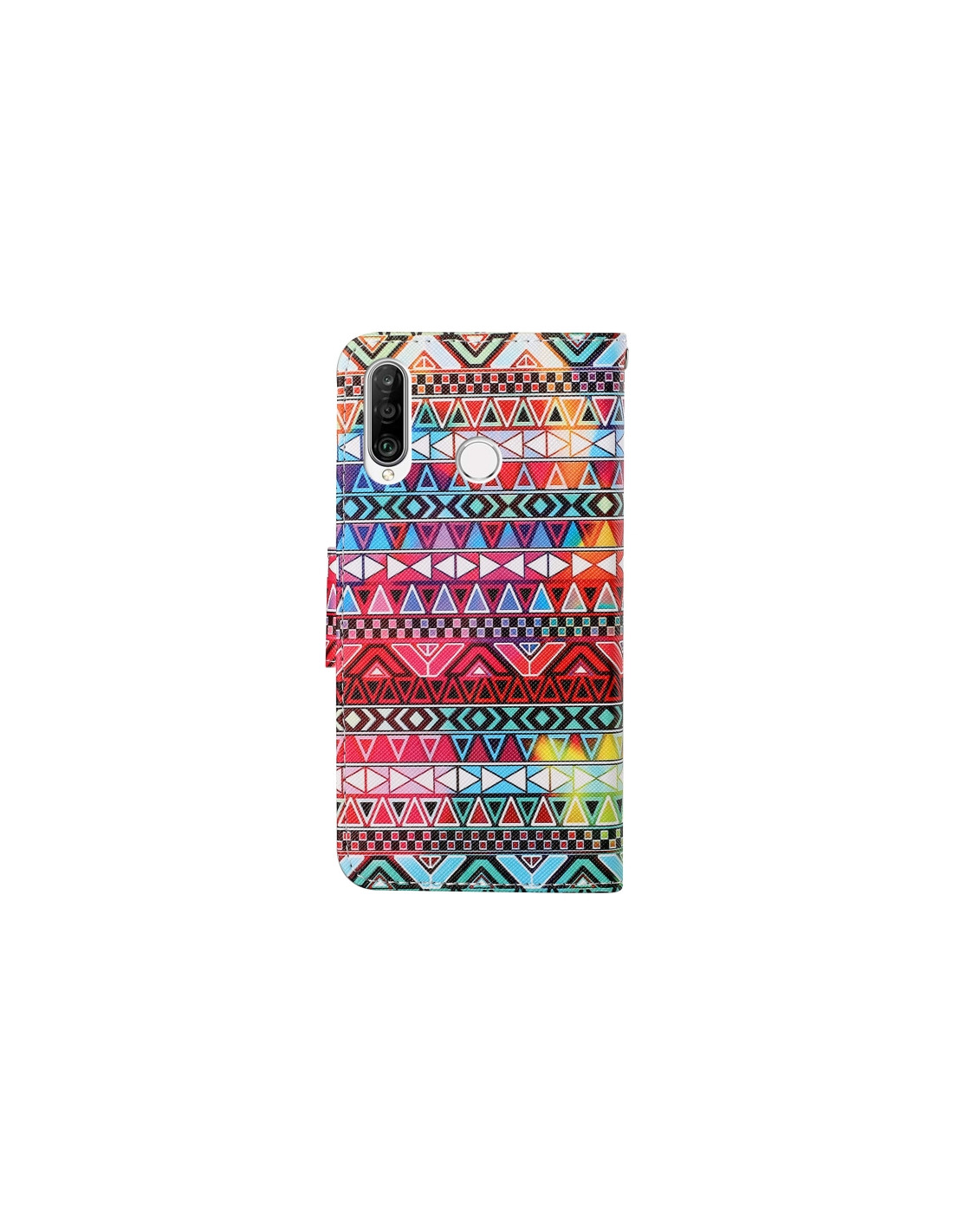 Elegante cover a flip in pelle per Huawei P30 Lite che combina protezione e funzionalità. Il design etnico tribale colorato rende il telefono unico e personalizzato. La chiusura orizzontale garantisce sicurezza durante l'utilizzo quotidiano.
