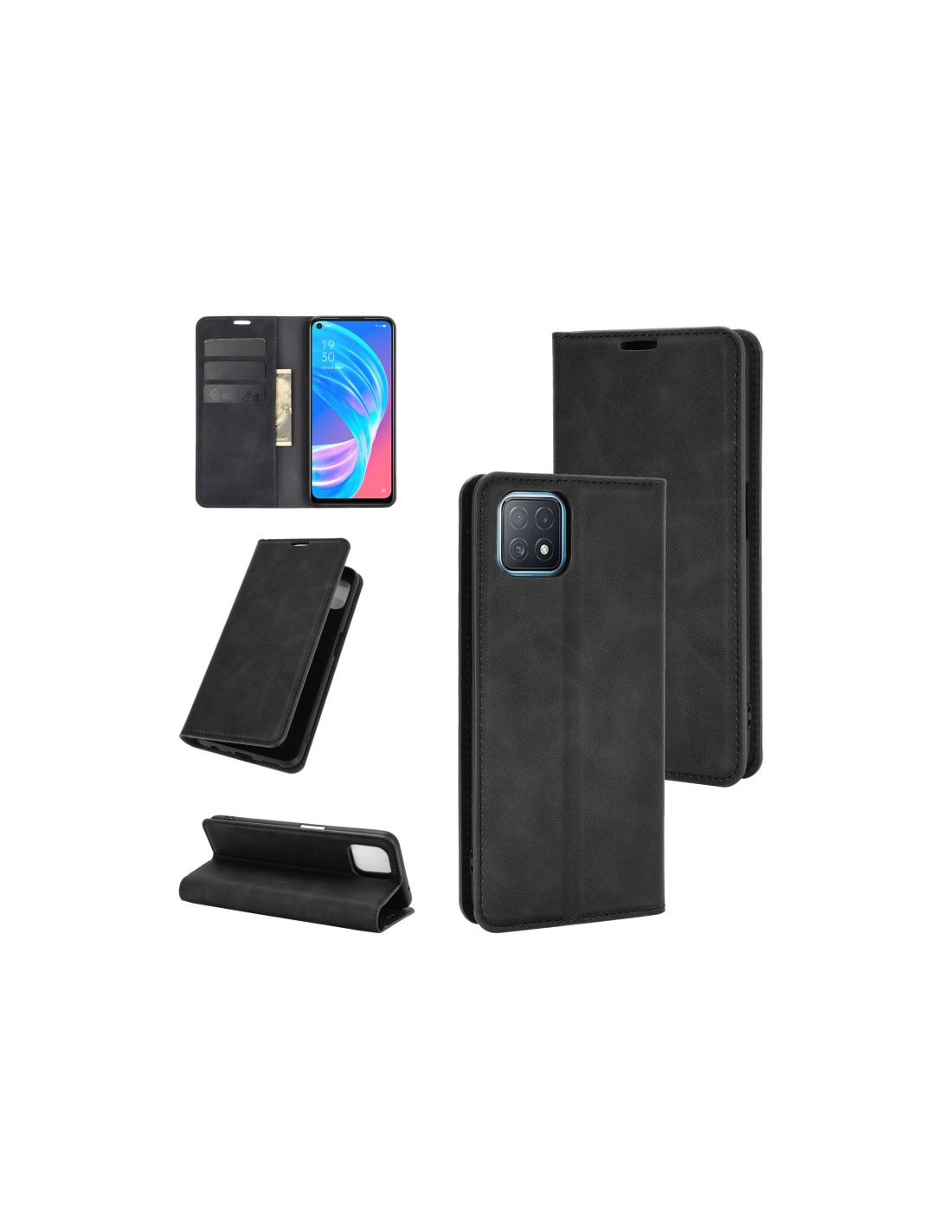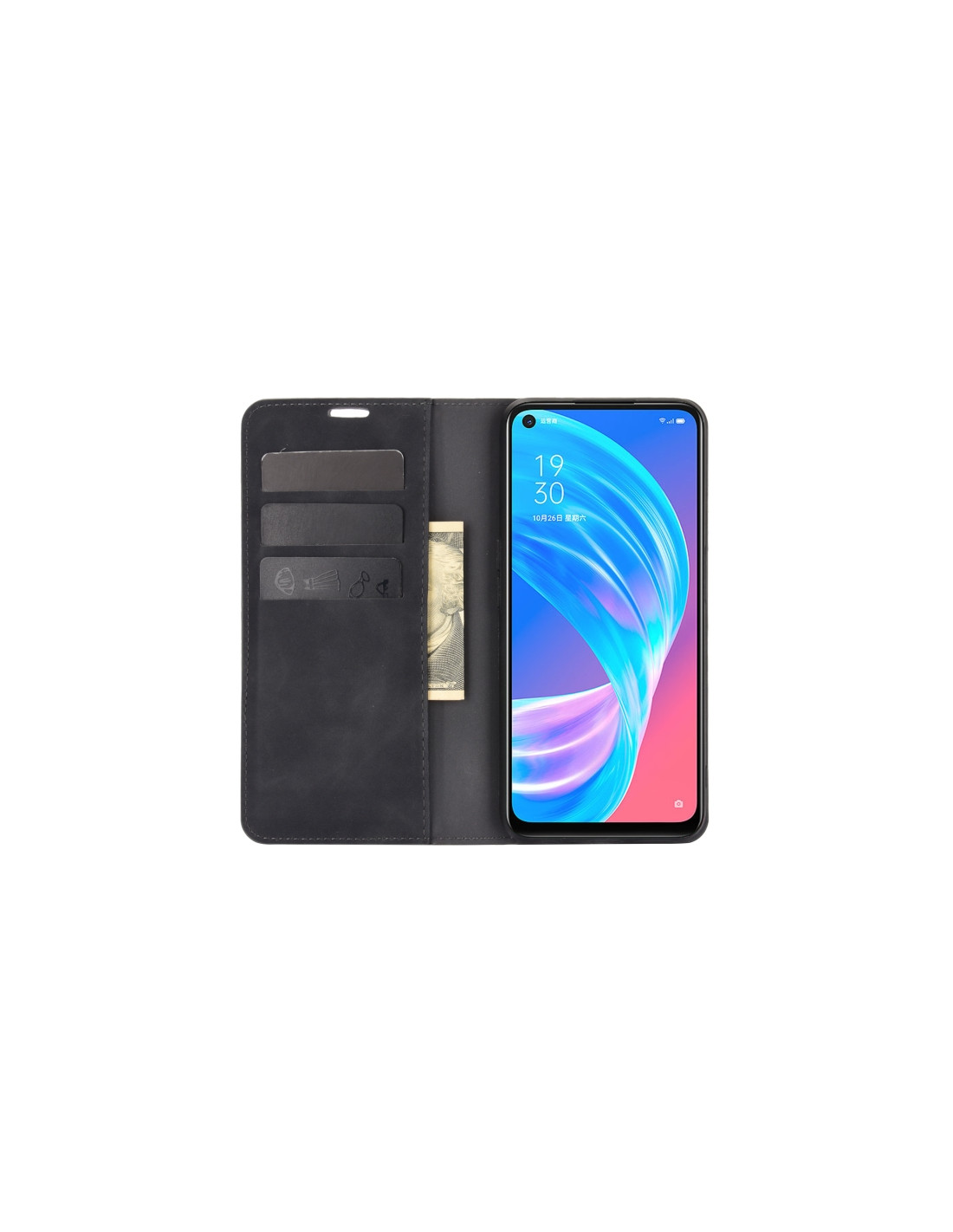 Cover a libro in pelle per OPPO A72 con chiusura magnetica, scomparti per carte e portafoglio integrato.