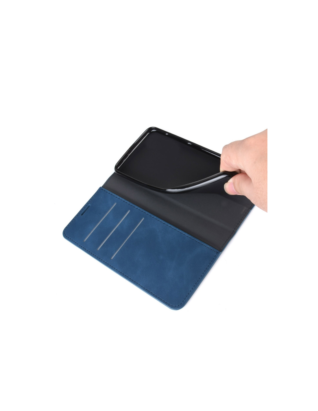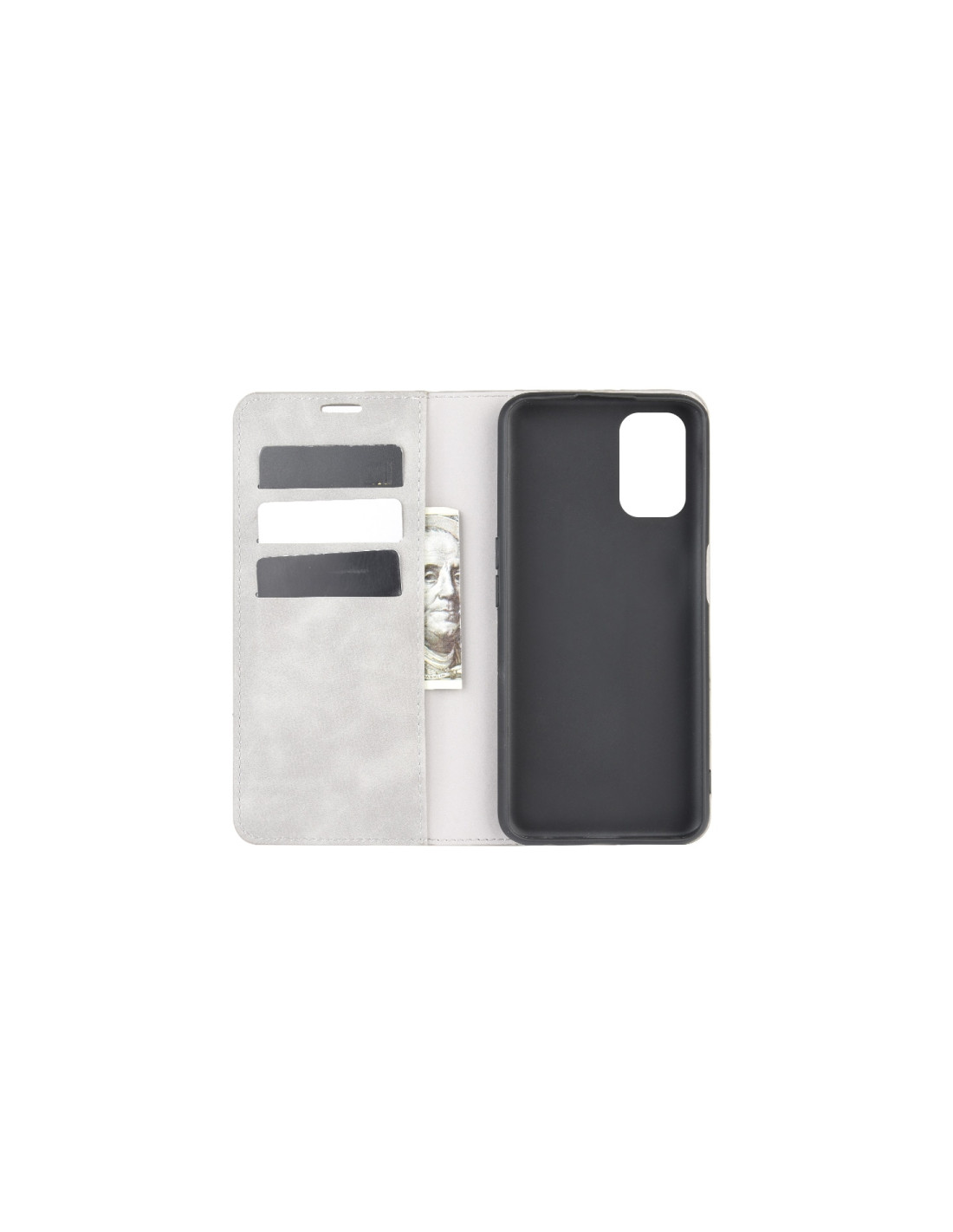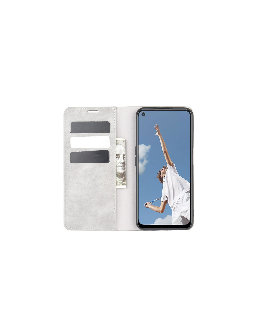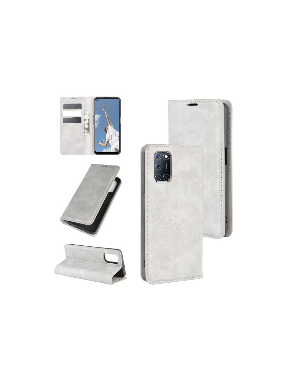 Cover a libro in pelle per OPPO A72 con chiusura magnetica, scomparti per carte e portafoglio integrato.