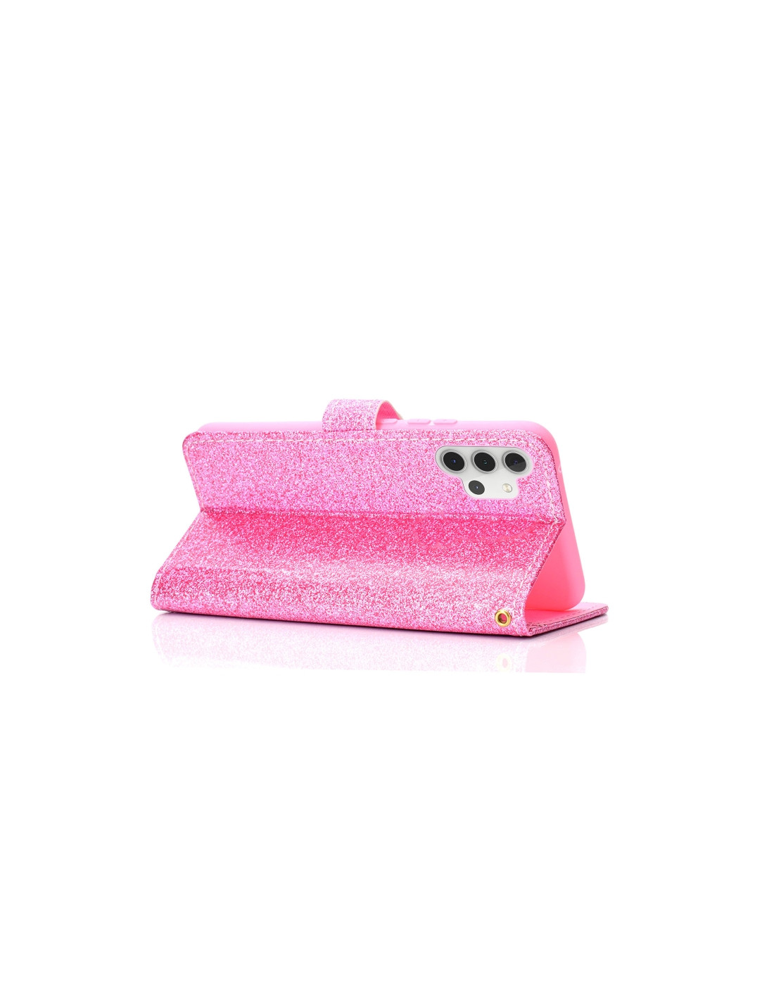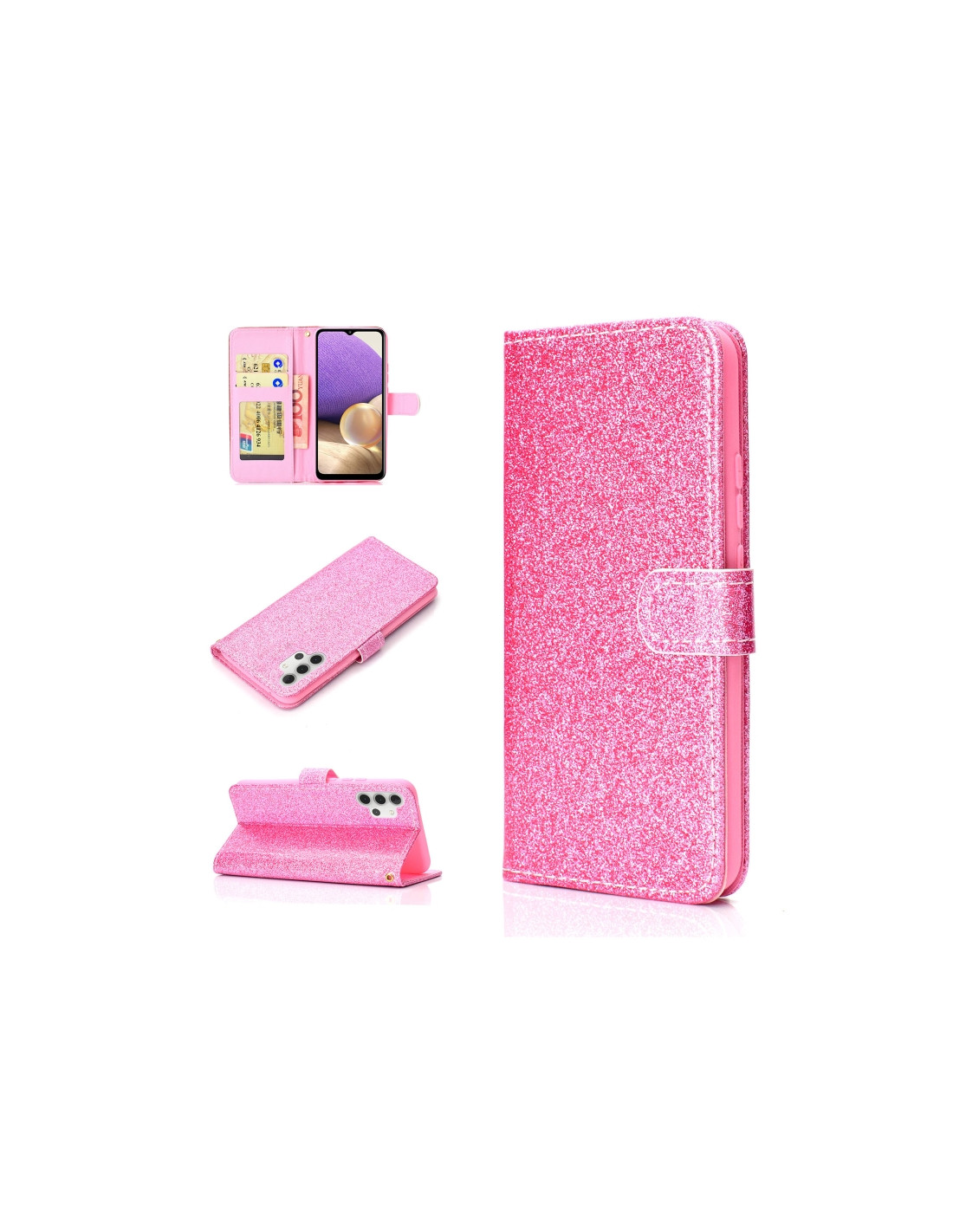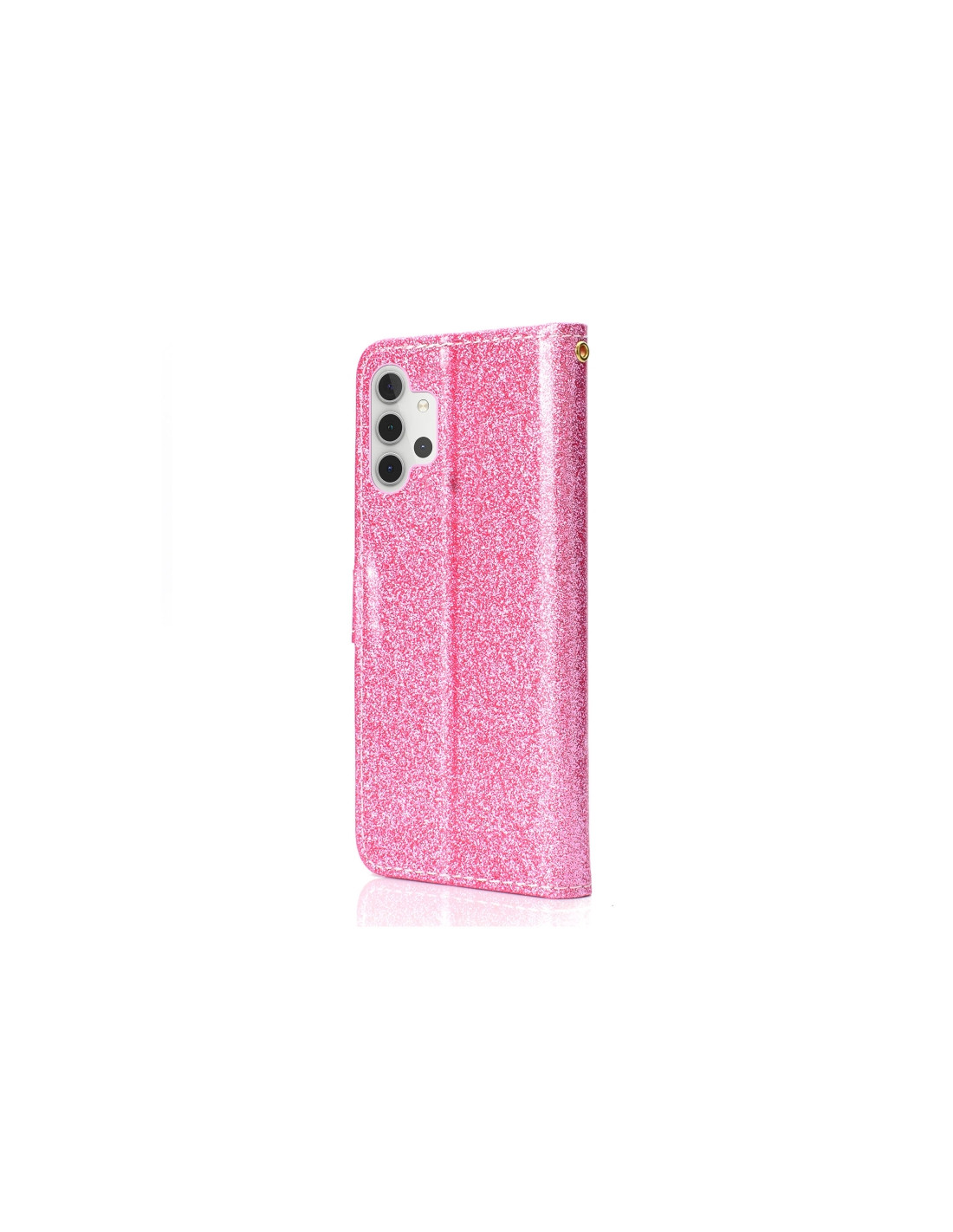 La cover a flip in pelle per Samsung Galaxy A32 4G combina protezione e stile con un design glitterato che cattura la luce. Realizzata in materiale pelle di qualità, offre una protezione completa del display e della scocca del dispositivo.
