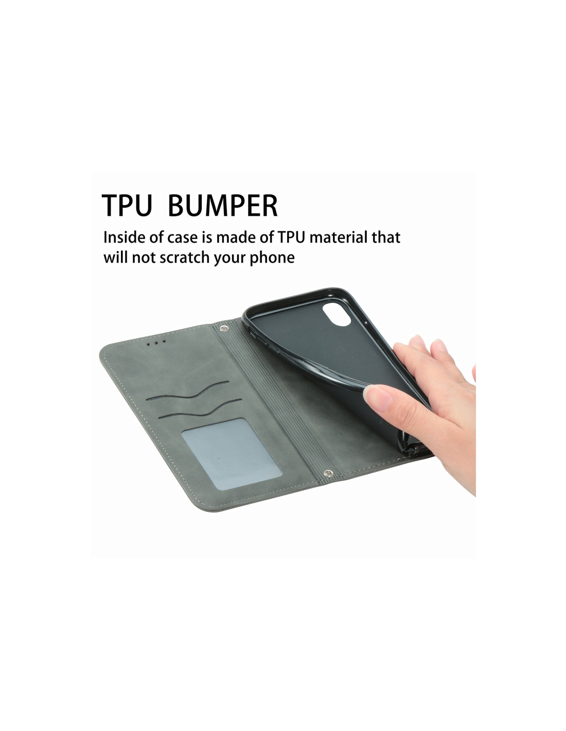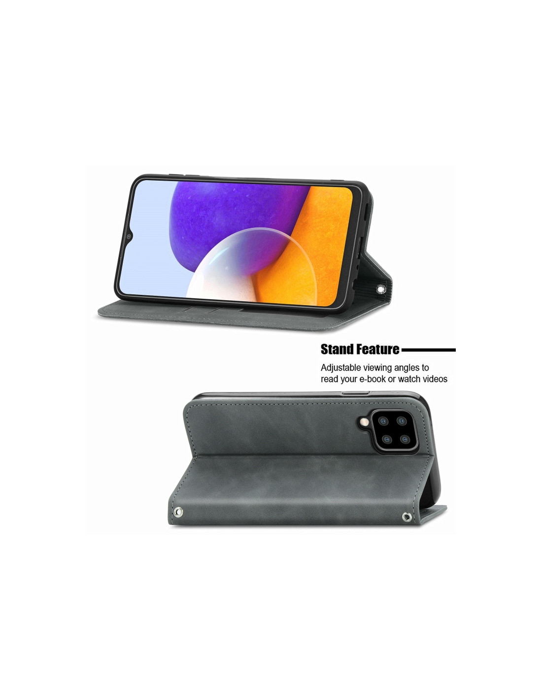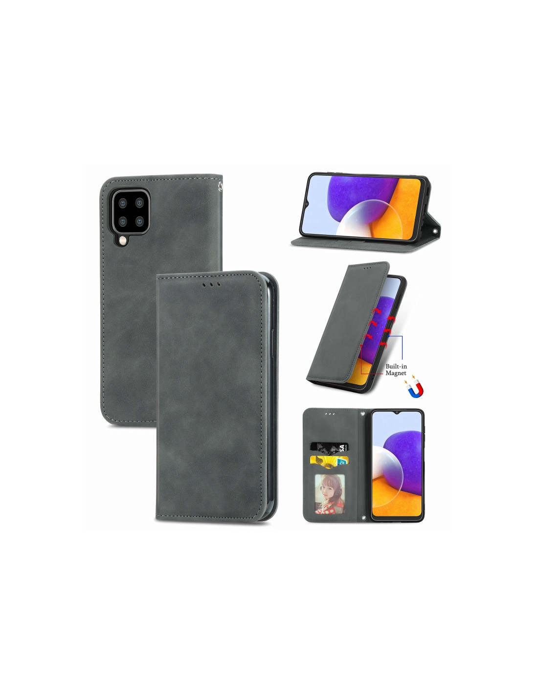 Cover Galaxy A22 4G Pelle PU Business con Portafoglio Grigio