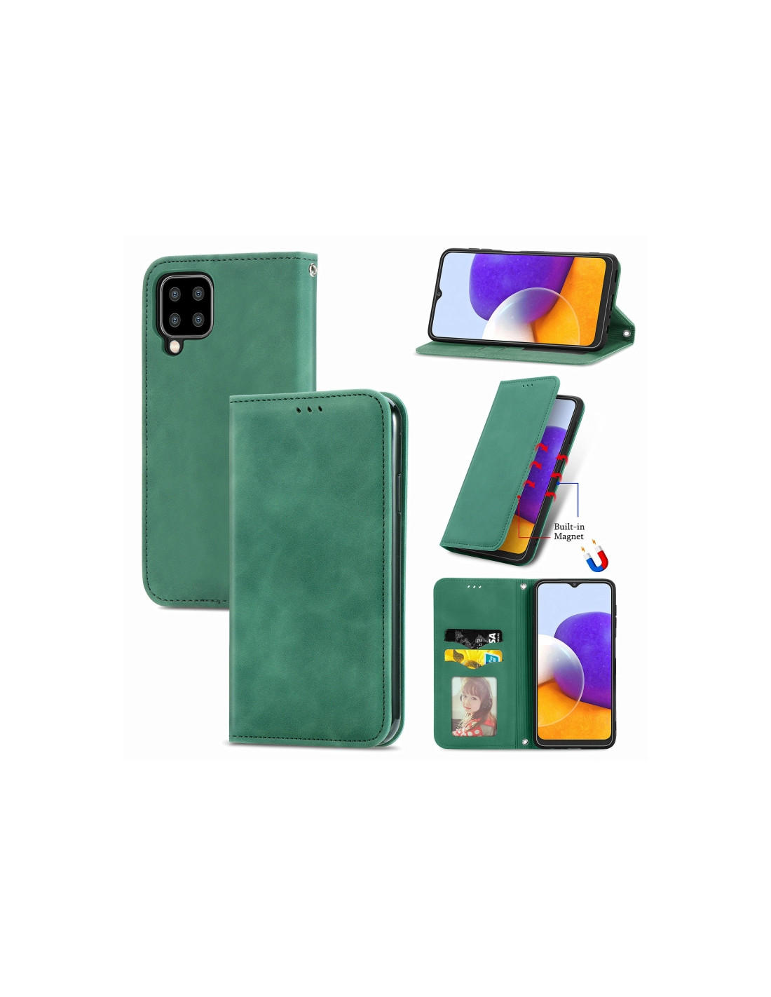Cover Galaxy A22 4G Pelle PU Business con Portafoglio Verde