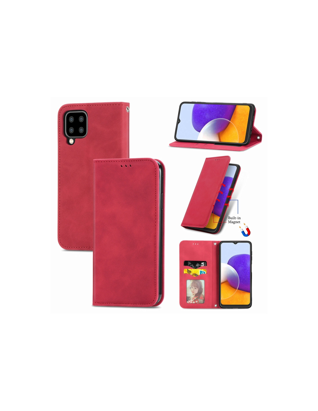 Cover Galaxy A22 4G Pelle PU Business con Portafoglio Rosso