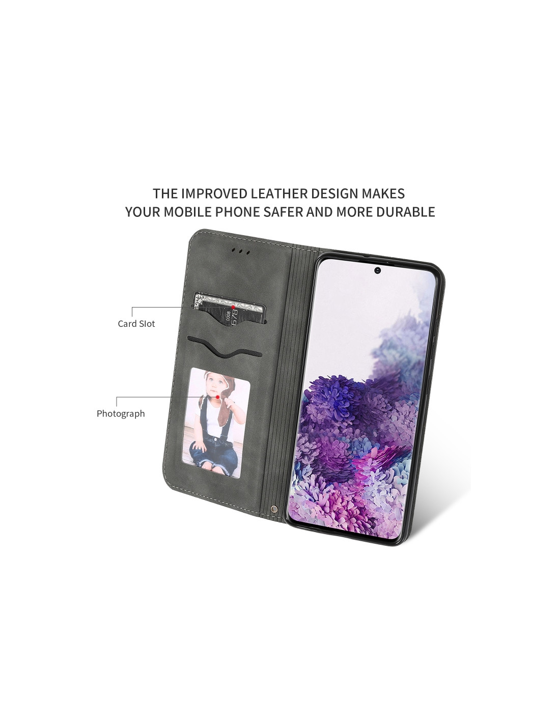 SamsungLa cover a libro per Galaxy S20 combina eleganza e praticità con un design retrò dal sapore business. Realizzata in pelle sintetica PU di qualità, offre una protezione completa del display e del retro del telefono. La chiusura magnetica mantiene il dispositivo sicuro, mentre il colore verde militare conferisce un aspetto sofisticato e professionale.