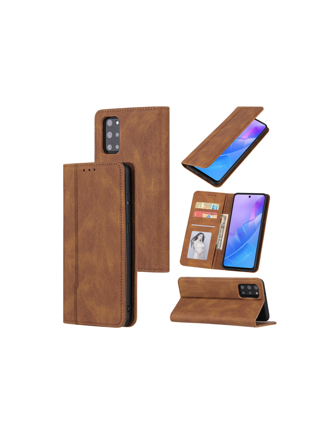Cover Galaxy A51 4G Pelle Portafoglio con Supporto Marrone