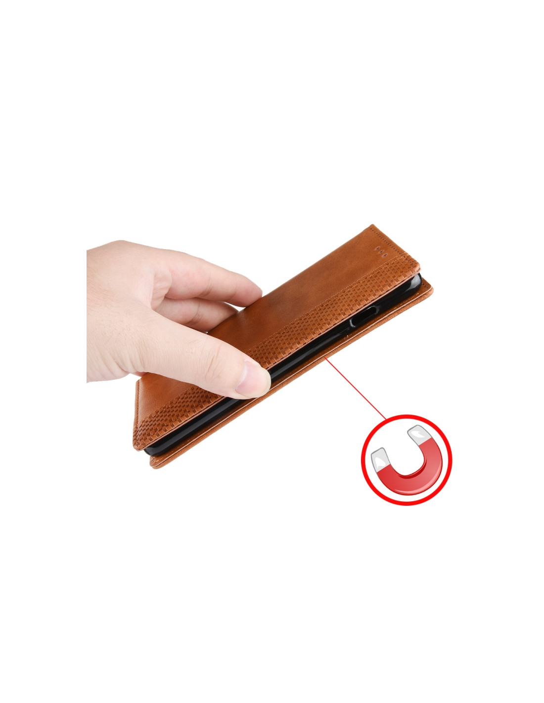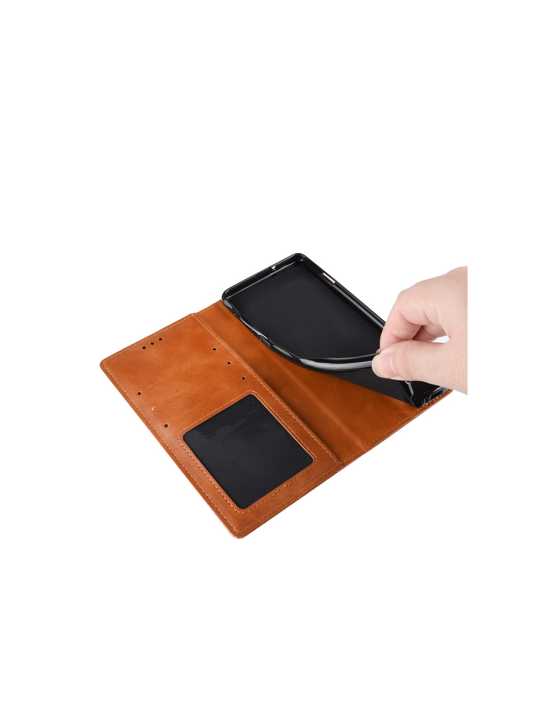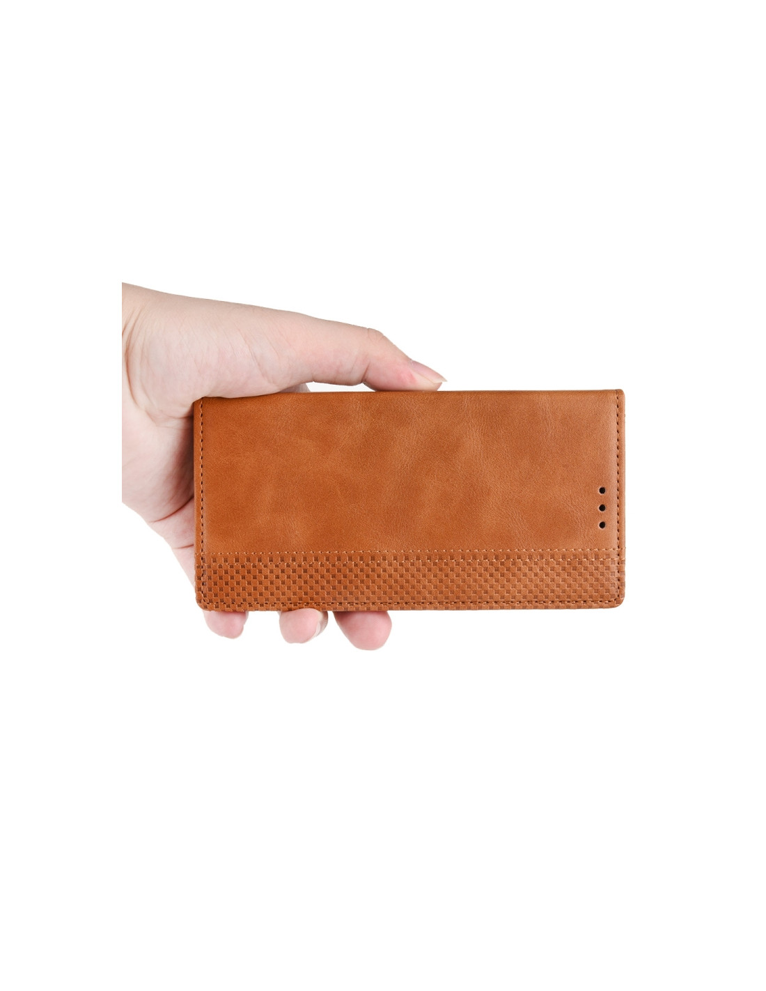 La cover a libro per Galaxy A20e combina stile retrò e funzionalità pratica. Realizzata in pelle sintetica Crazy Horse di qualità, questa custodia offre protezione completa dello schermo e della scocca del tuo smartphone.