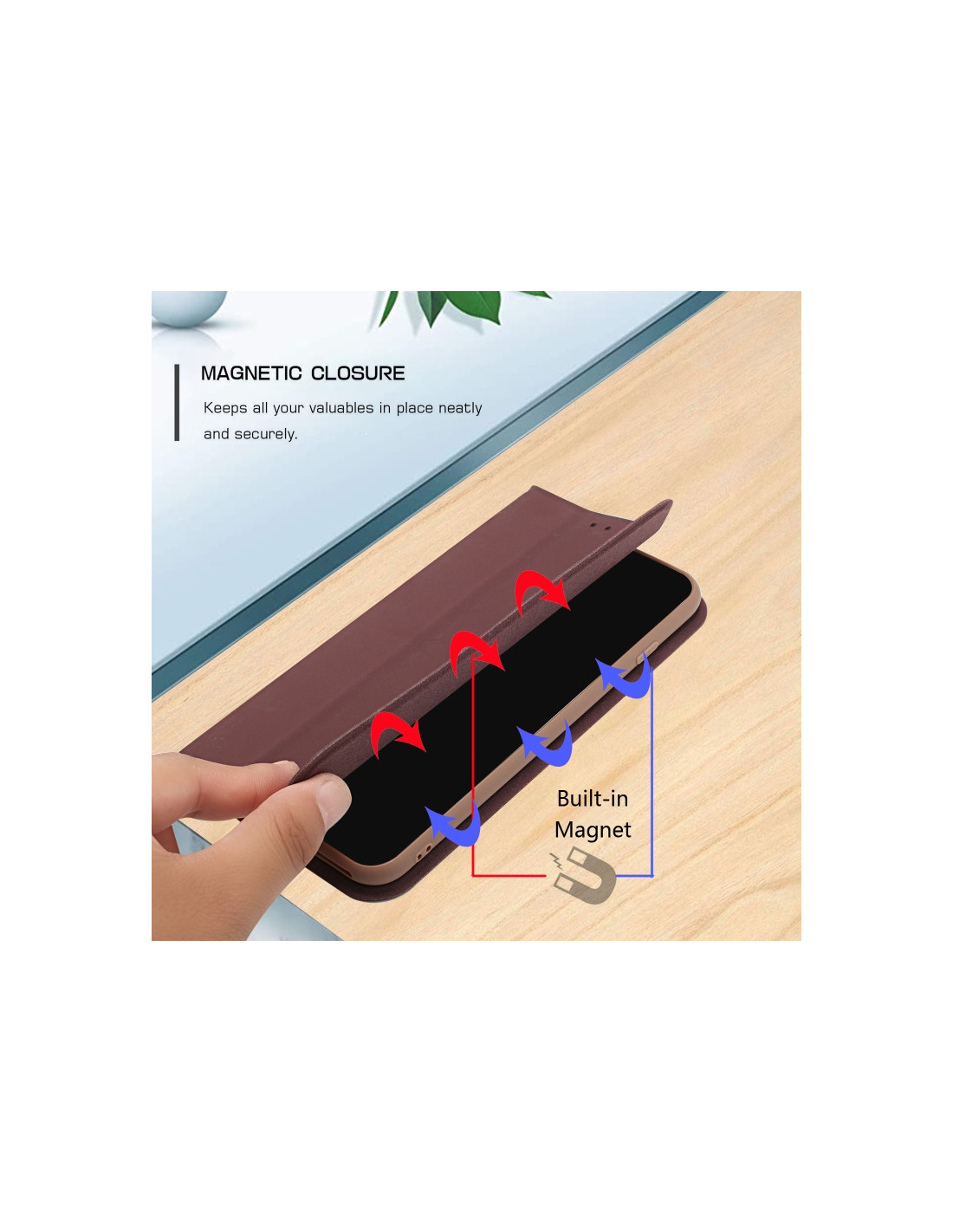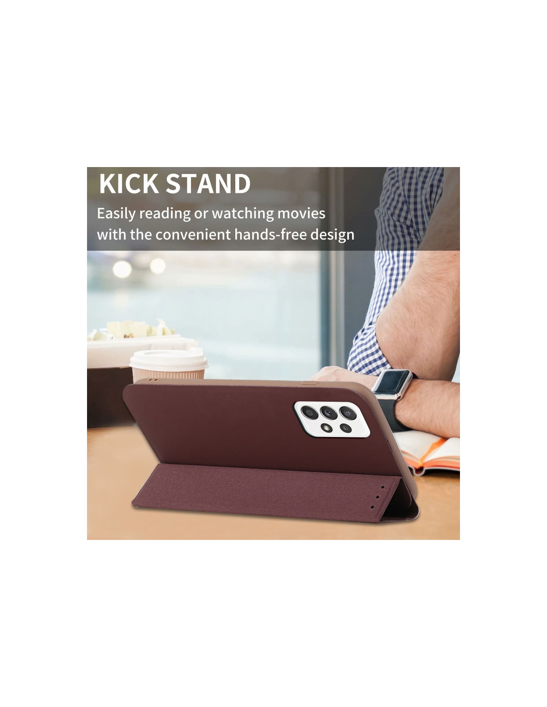 La cover flip magnetica per Samsung Galaxy A72 5G combina eleganza e praticità in un design ultra sottile. Realizzata in pelle sintetica di qualità, offre una sensazione premium al tatto mantenendo un profilo compatto.