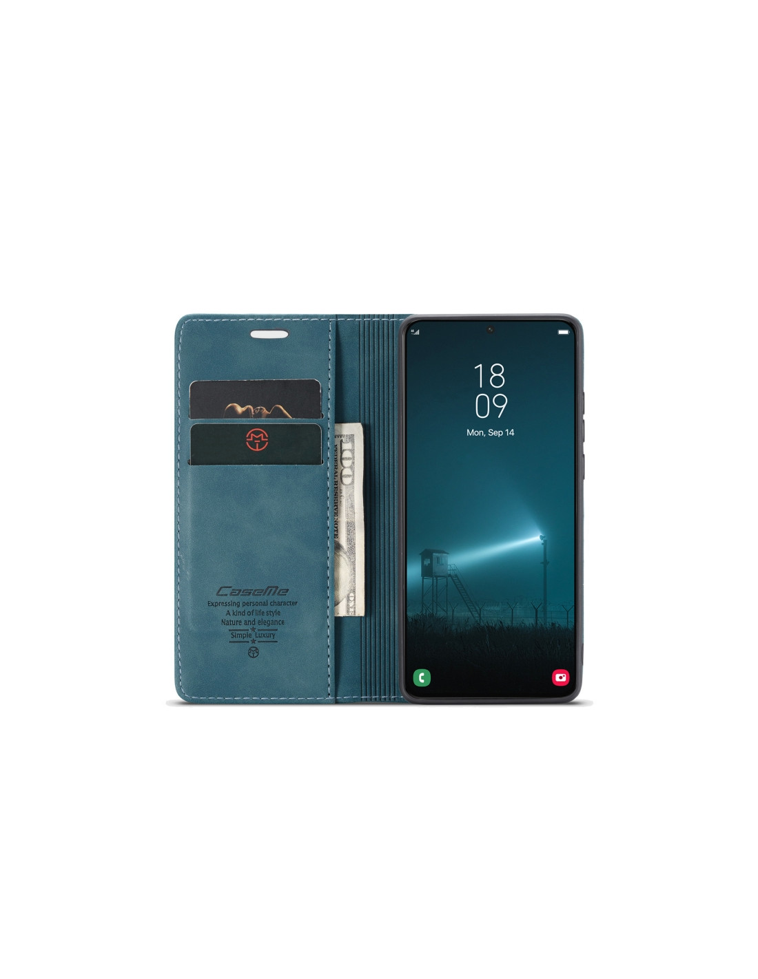 La cover a libro CaseMe 013 per Samsung Galaxy S22+ combina eleganza e funzionalità in un unico accessorio. Realizzata in pregiata pelle PU di qualità, offre una protezione completa dello schermo e del retro del telefono con un design sofisticato in blu.