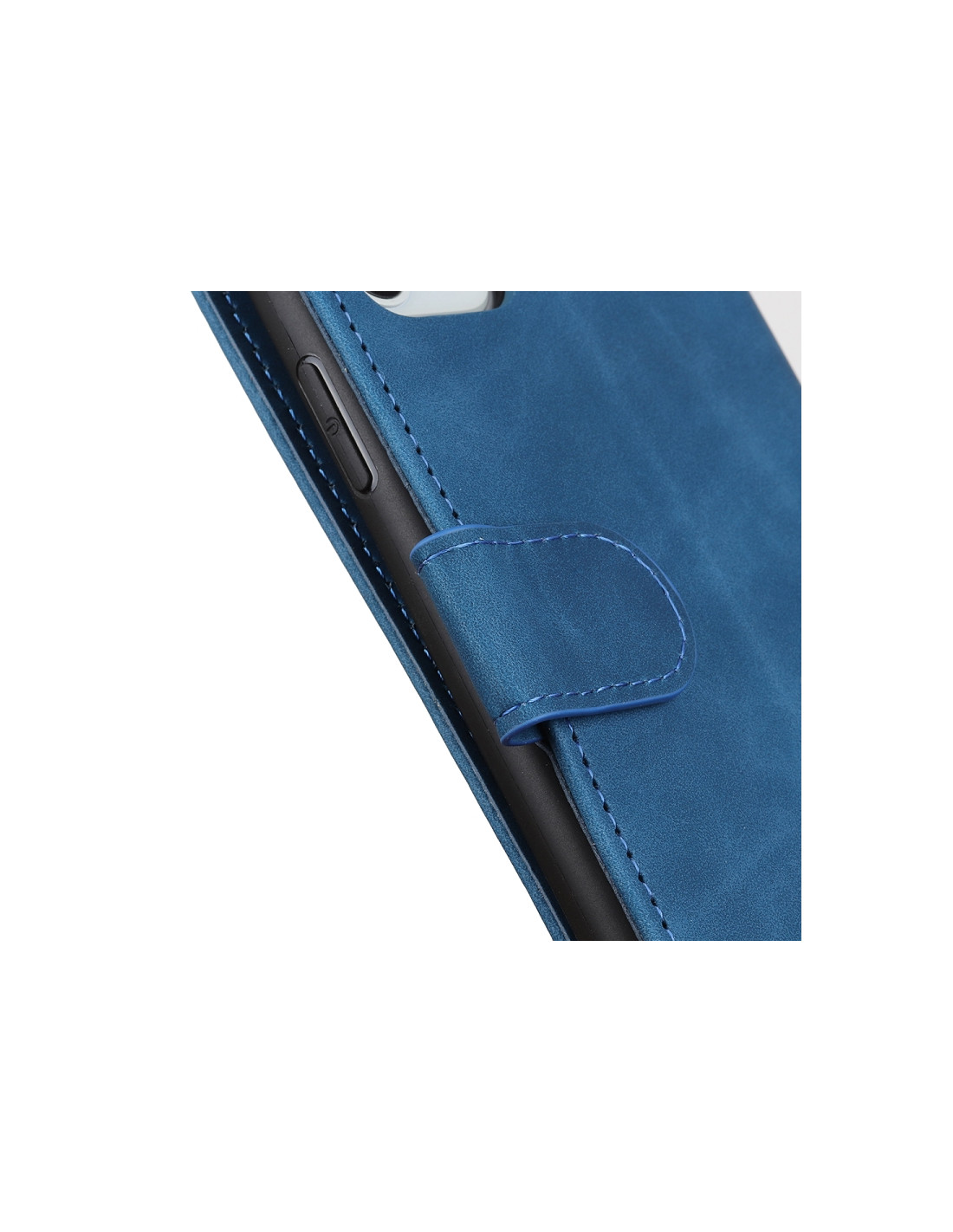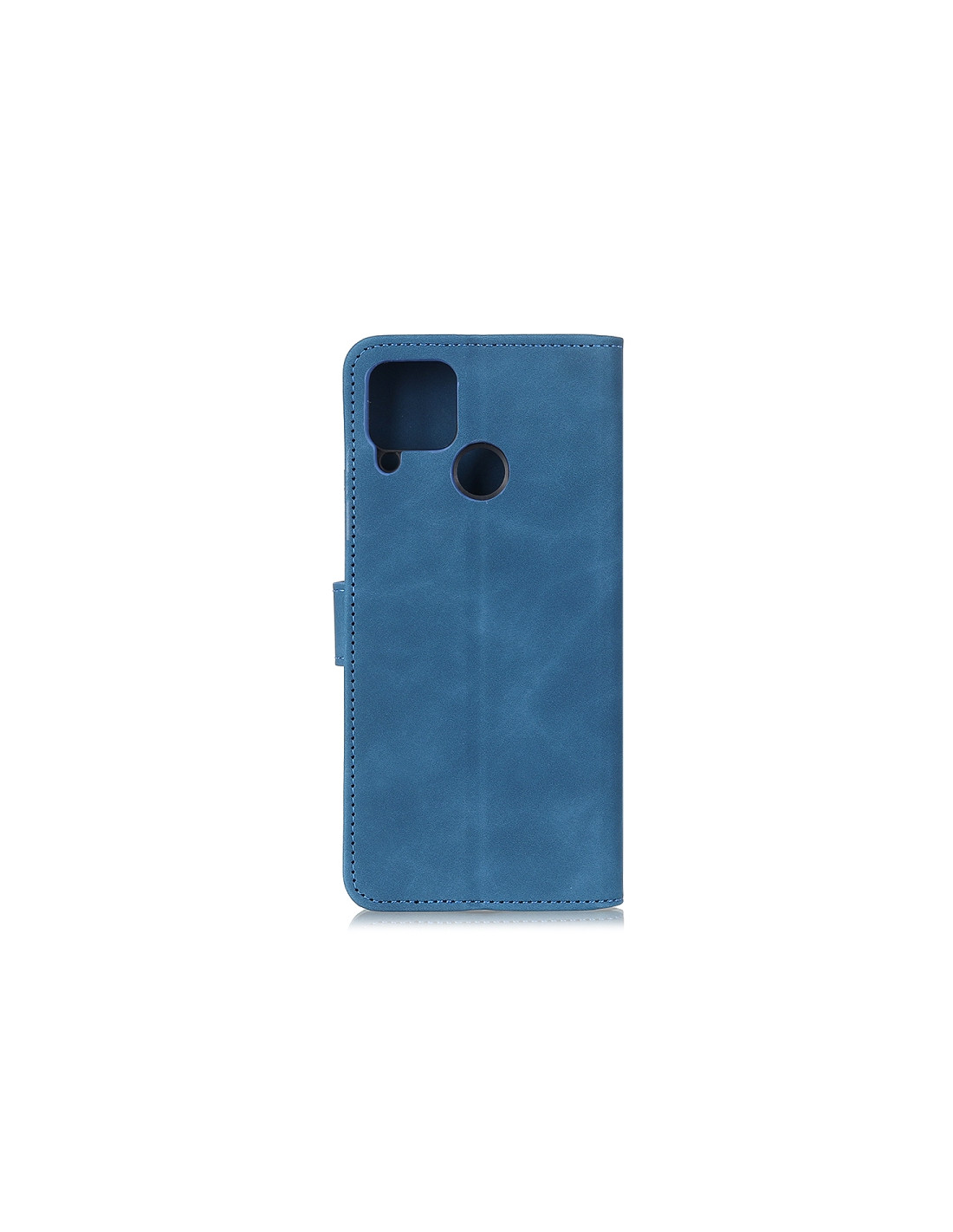 Cover a libro Oppo Realme C11 in PU + TPU con texture retrò, porta carte e portafoglio integrato in blu.