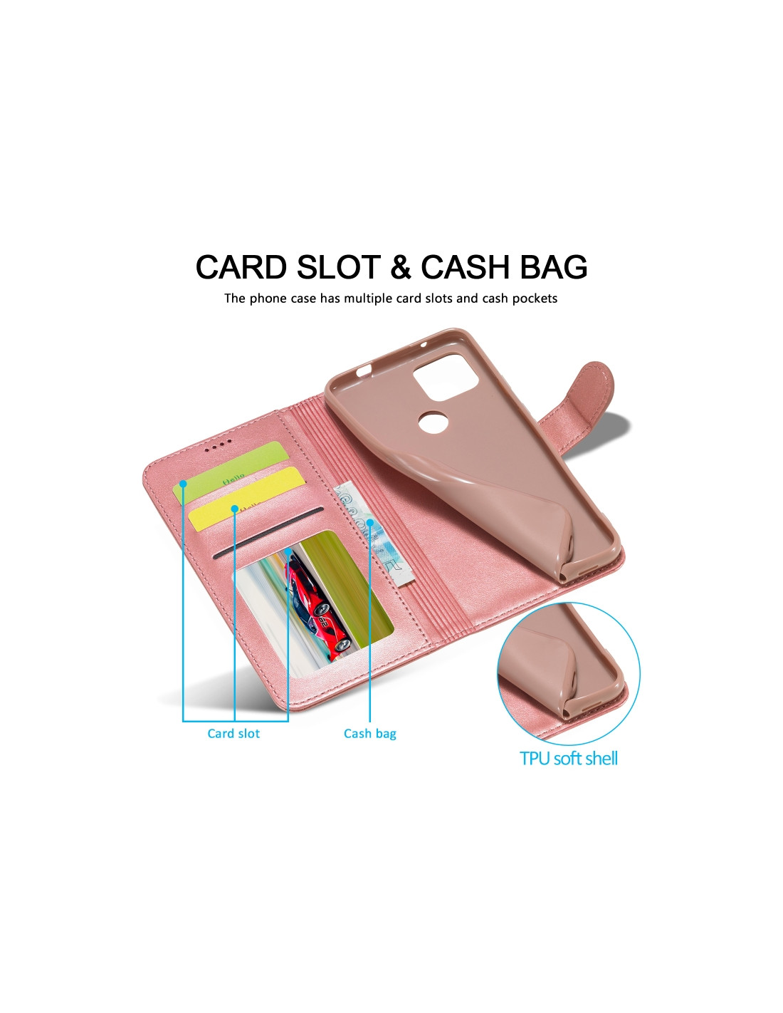 La cover Oppo Realme C11 KHAZNEH combina protezione e praticità in un elegante design a libro. Realizzata in PU e TPU di qualità, offre una resistenza superiore agli urti e alle cadute.