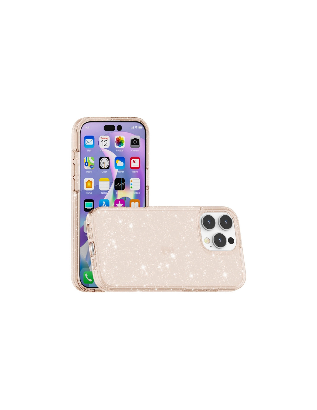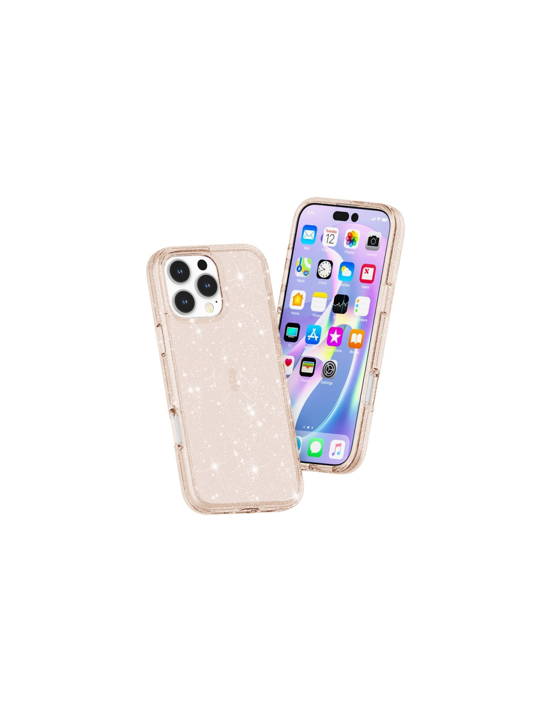 Cover antiurto per iPhone 16 Pro Max con finitura glitterata in oro. Protezione resistente agli urti con design brillante.