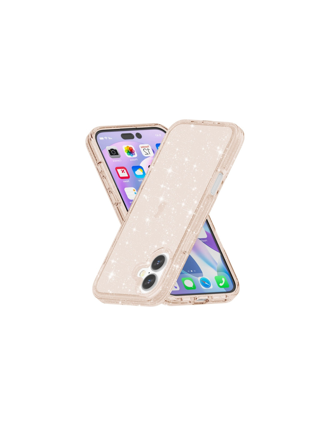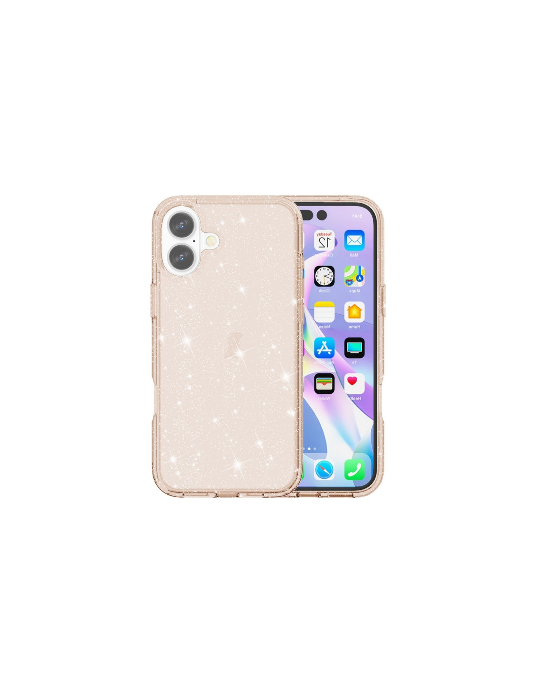 Cover antiurto per iPhone 16 Plus con finitura glitterata in oro. Protezione robusta e design brillante.