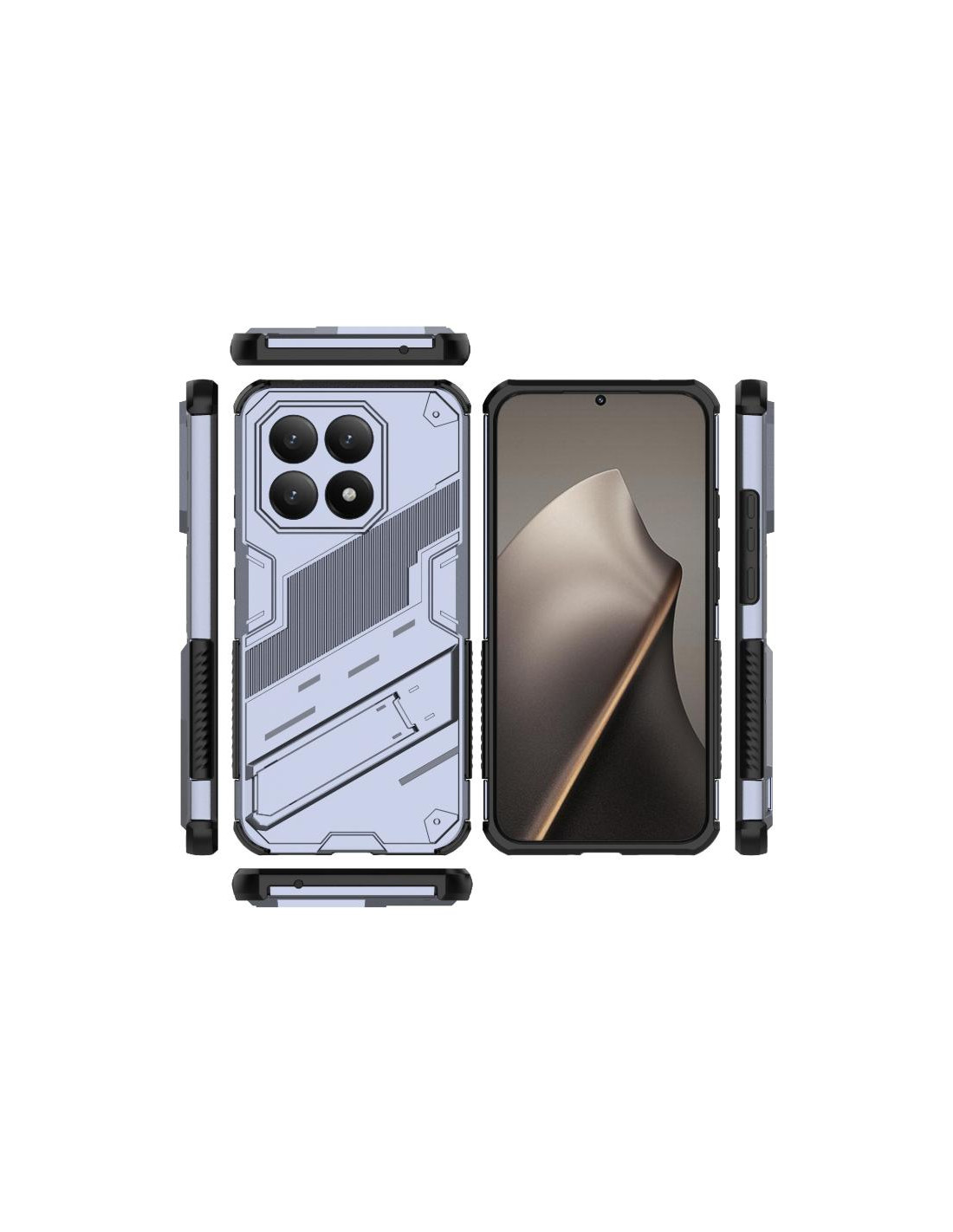 Cover antiurto Xiaomi 15T 5G in PC + TPU con supporto integrato. Design Punk Armor robusto e resistente.