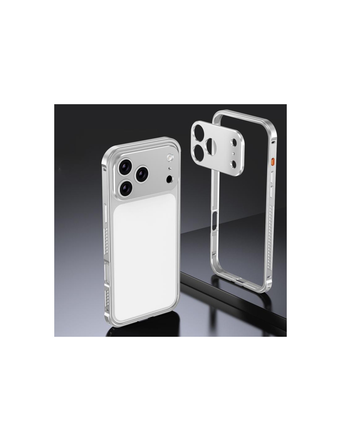 Cover iPhone 17 Pro Corazza Metallo Arancione Argento