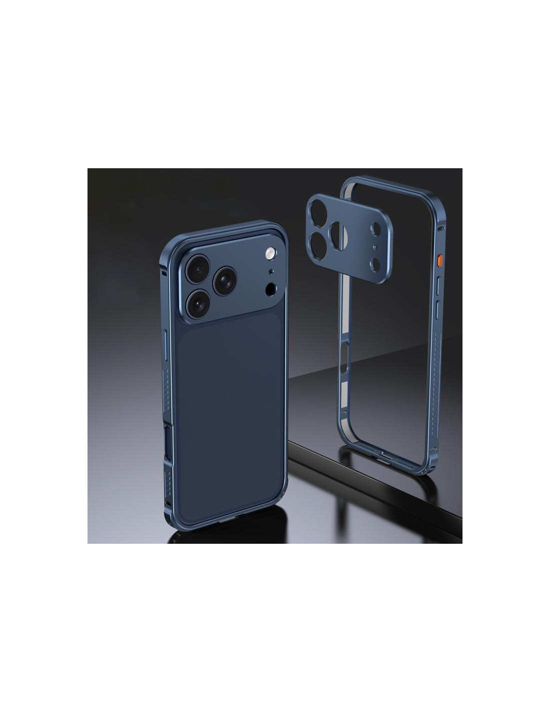 Cover antiurto per iPhone 17 Pro con cornice in metallo e protezione doppia lato. Grip antiscivolo e protezione obiettivo.