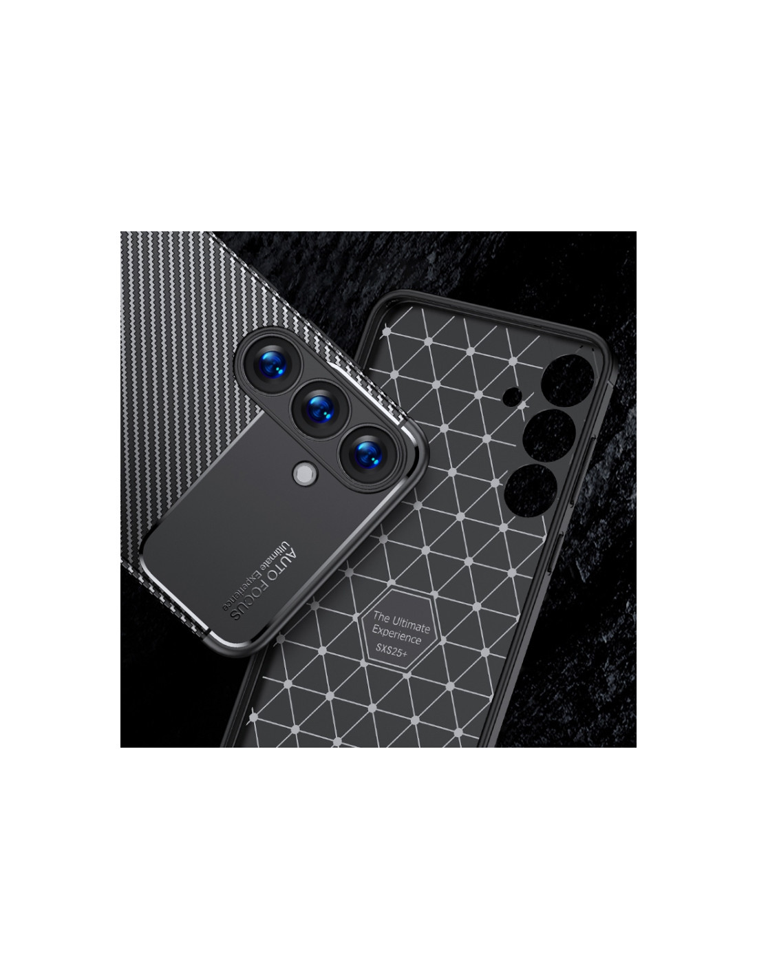 Cover antiurto Galaxy S25 Edge 5G in TPU con texture fibra di carbonio. Protezione robusta e design elegante.