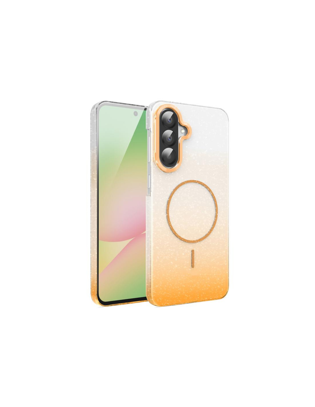 Cover antiurto per Galaxy A56 5G con design glitterato e sfumato. Compatibile MagSafe, protezione totale.