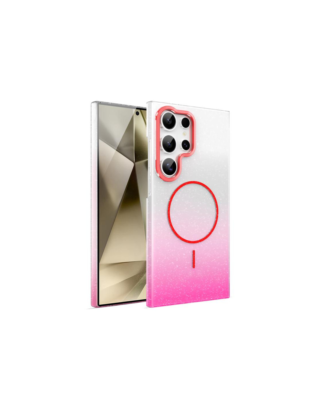 Cover antiurto Galaxy S24 Ultra con design glitterato sfumato e tecnologia MagSafe integrata per massima protezione.