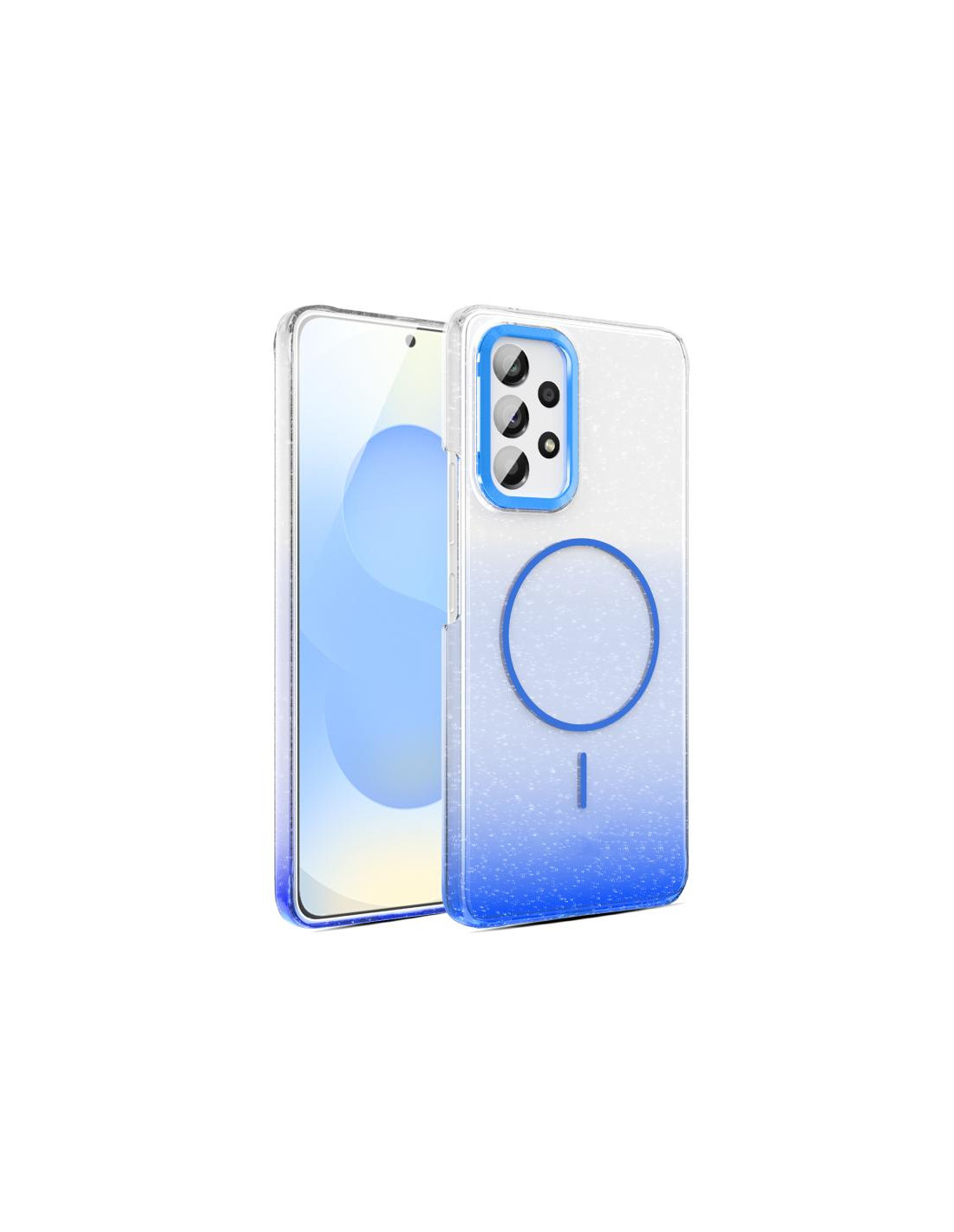 Cover antiurto Galaxy A53 5G con glitter sfumato oro, protezione MagSafe e design diamante.