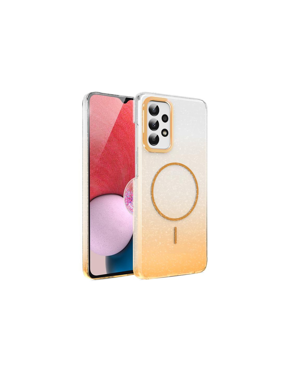 Cover antiurto Galaxy A13 4G con design glitterato sfumato e tecnologia MagSafe integrata. Protezione totale e stile.