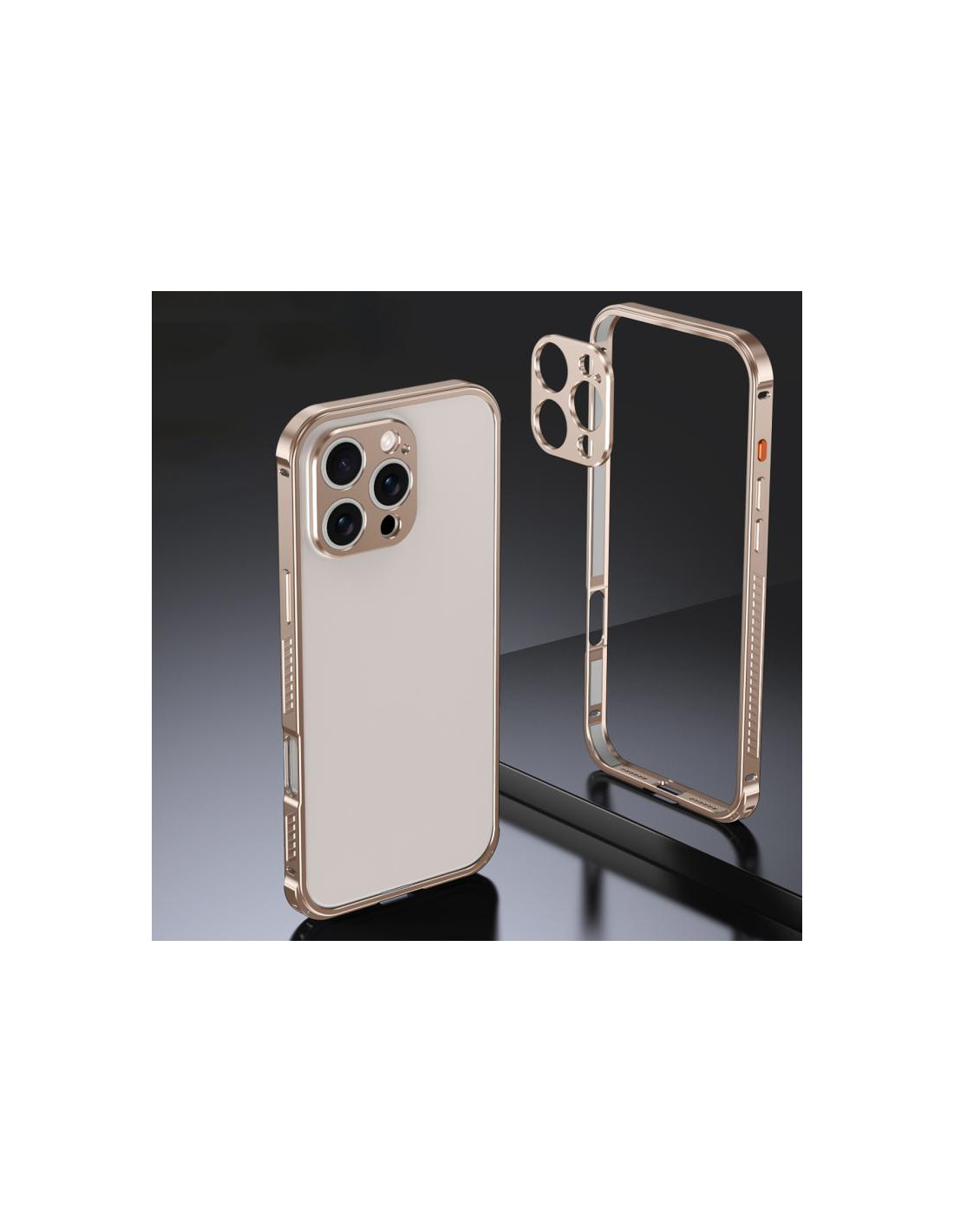 Cover antiurto per iPhone 16 Pro Max con cornice metallo doppia protezione e protezione lente. Design antiscivolo.