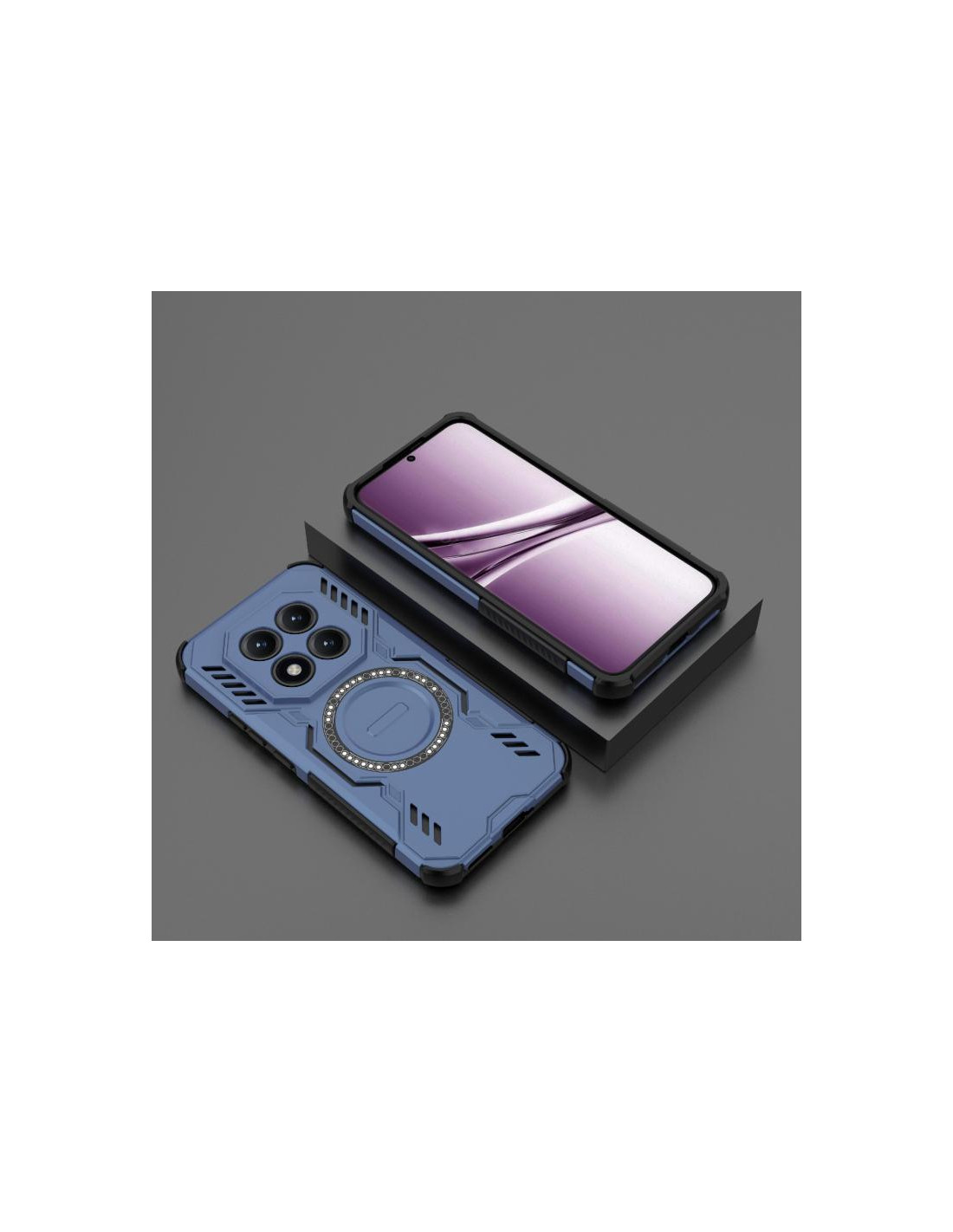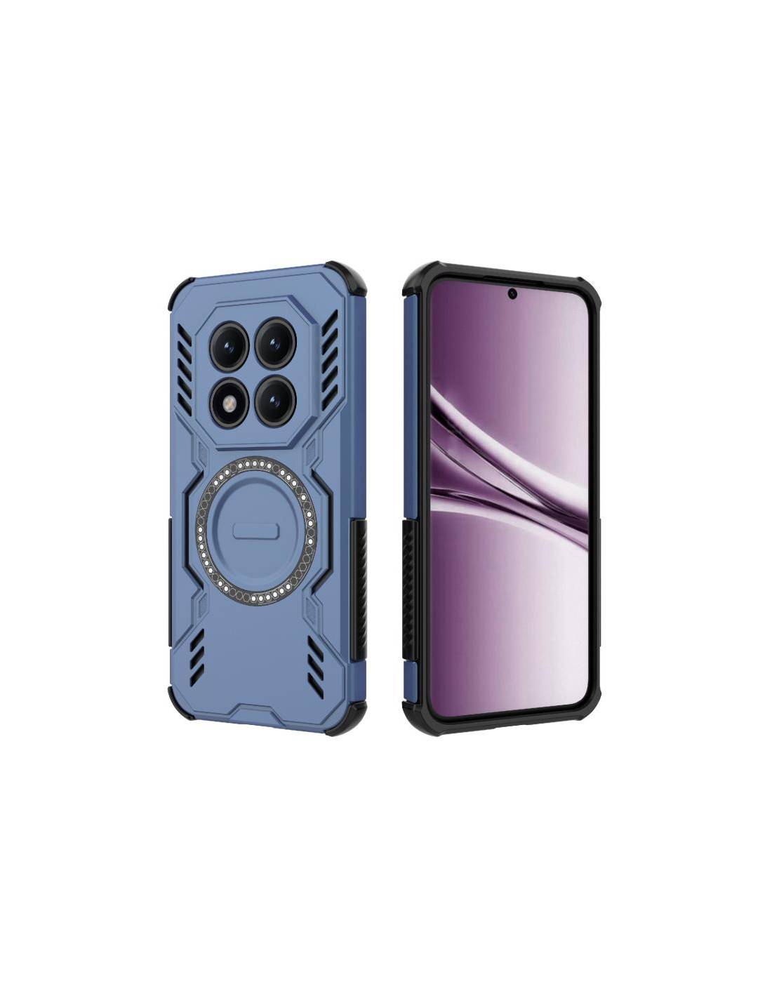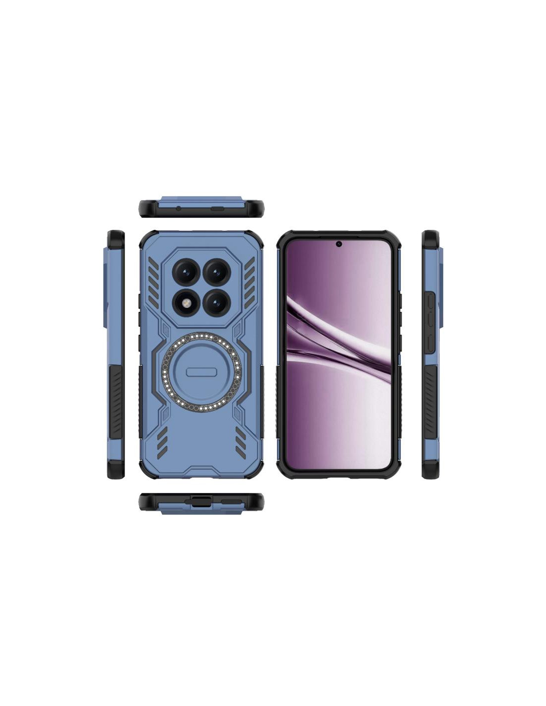 Cover antiurto per Redmi Note 15 Pro+ con anello magnetico MagSafe e protezione Butterfly Armor in blu.