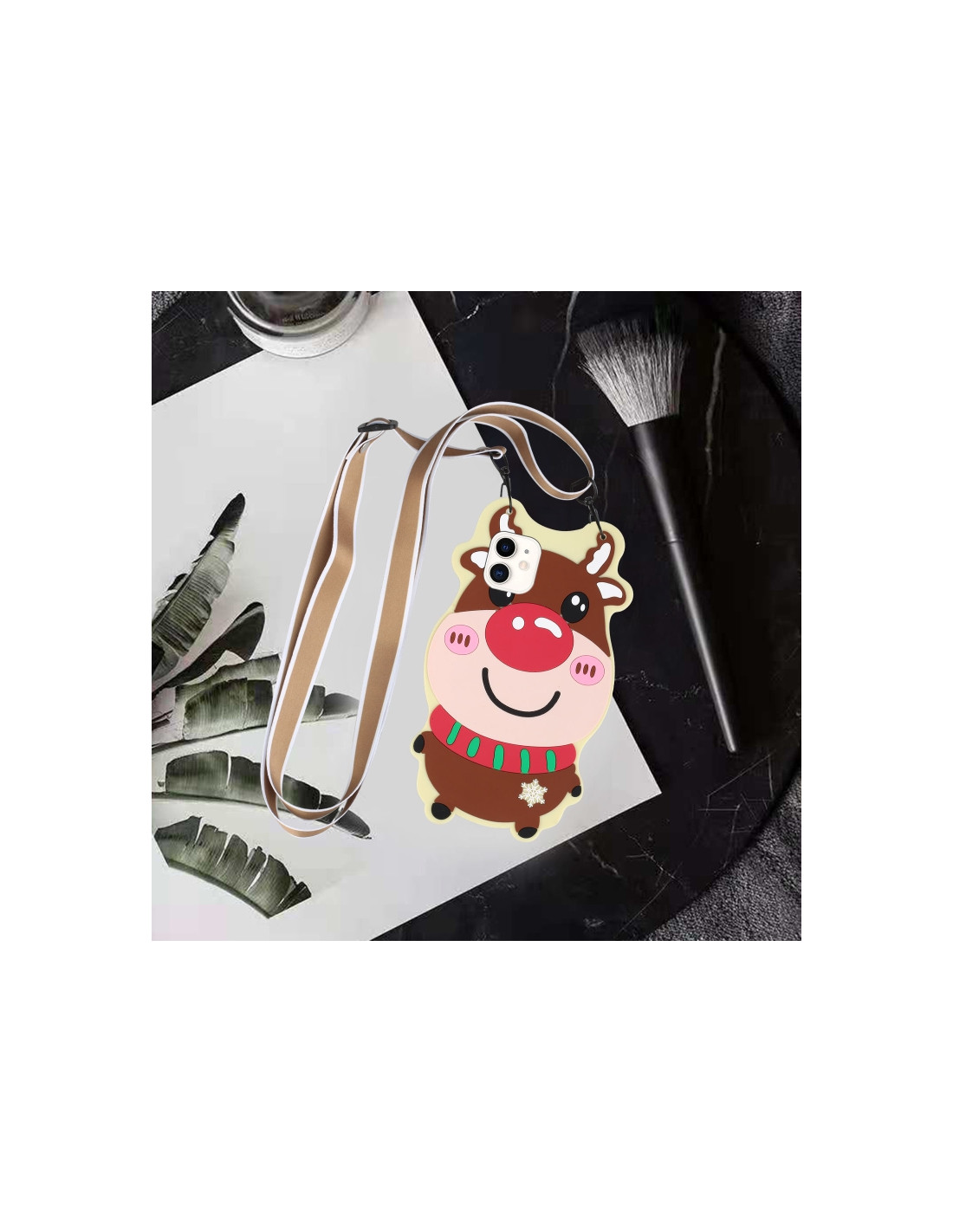 Cover iPhone 11 in TPU antiurto con design natalizio alce e cordino per il collo.