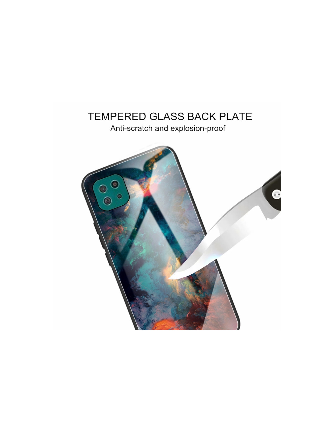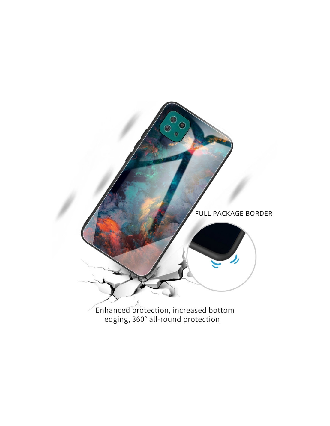 Cover antiurto Galaxy A22 5G in vetro e TPU con design floreale. Protezione robusta e stile elegante.