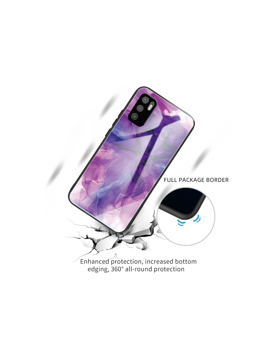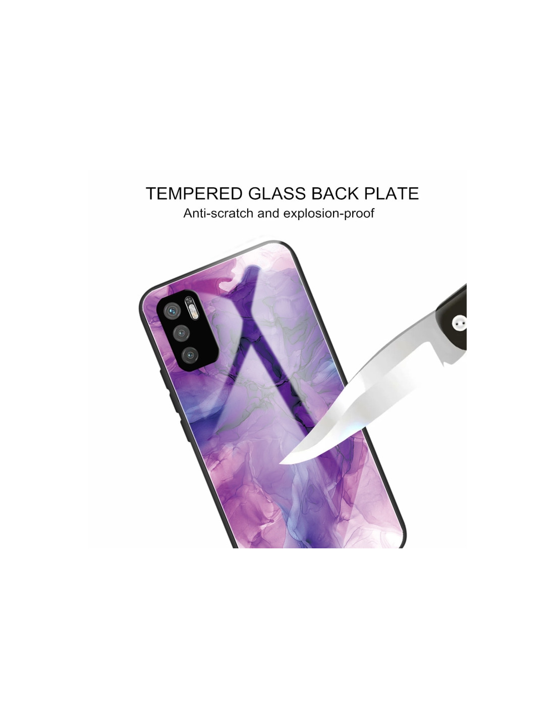 Cover in vetro protettivo per Redmi Note 10 5G con design marmo astratto viola elegante e resistente.