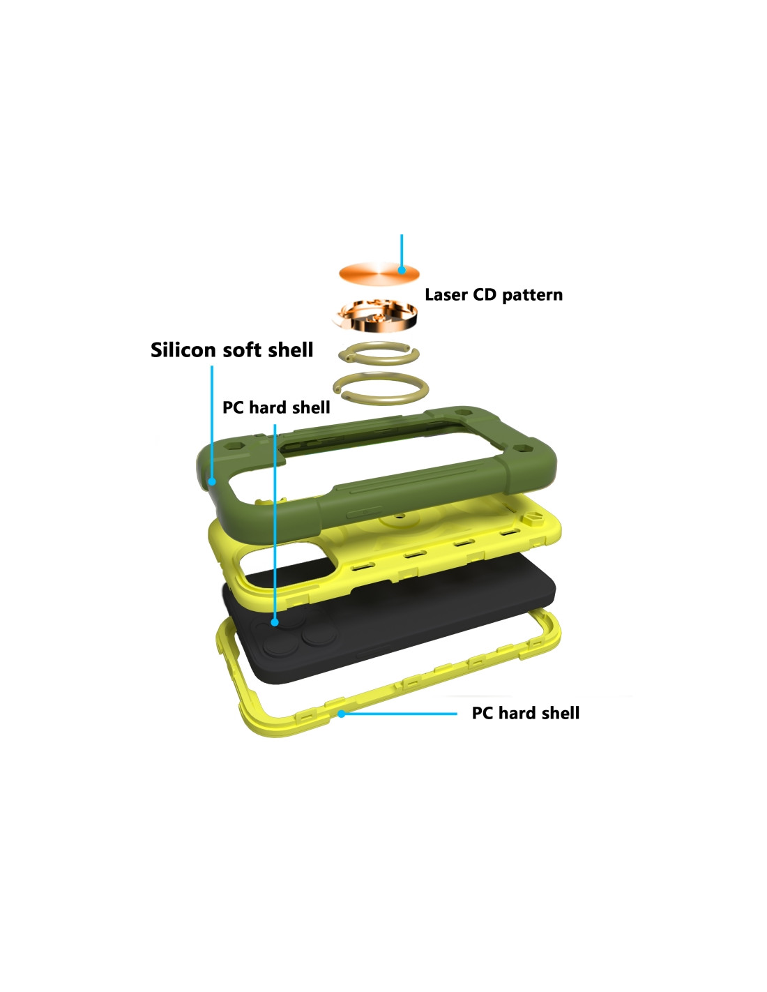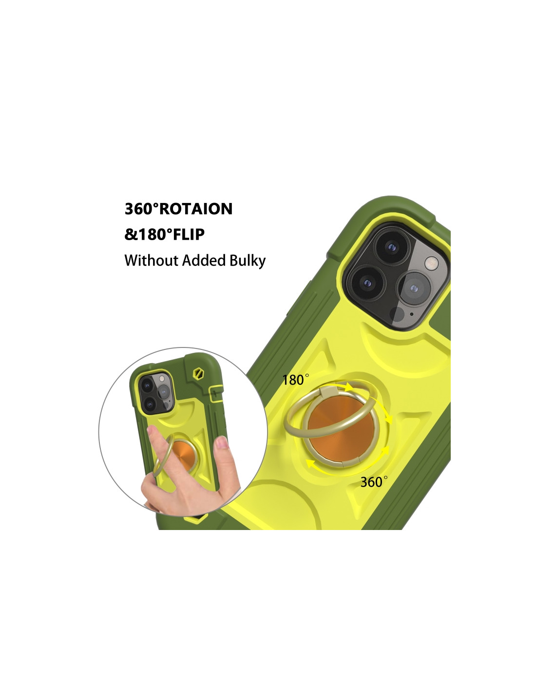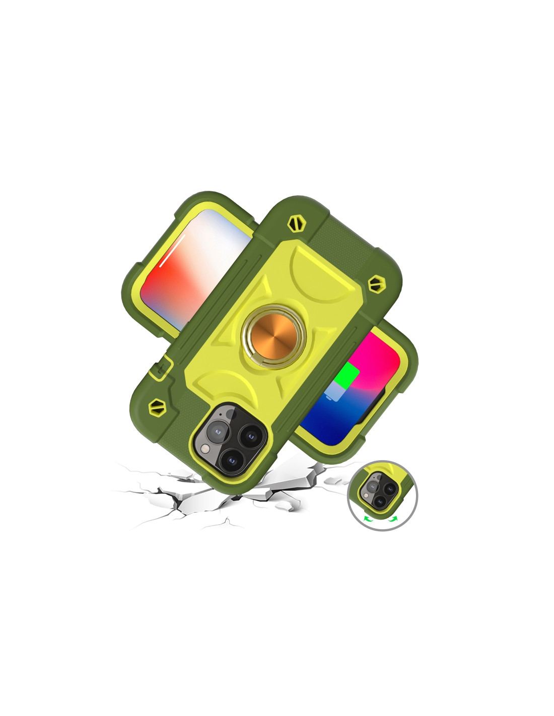 Cover antiurto per iPhone 13 Pro in silicone e PC con doppio anello. Protezione totale in colore avocado.