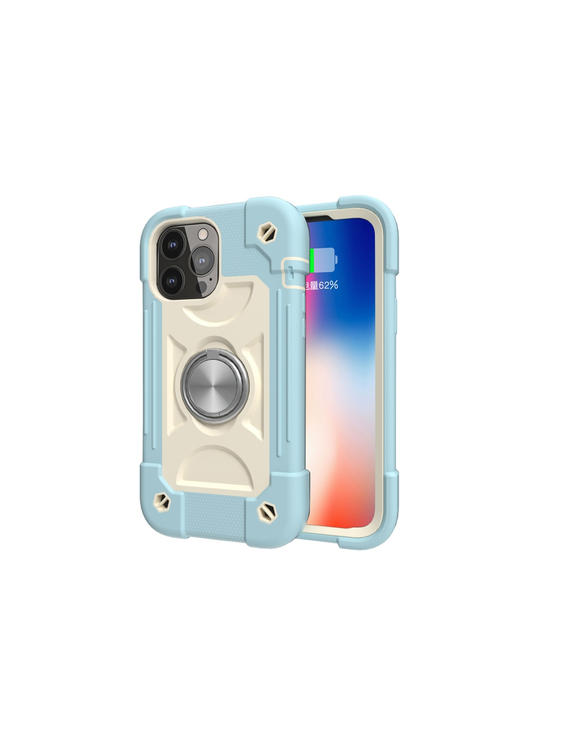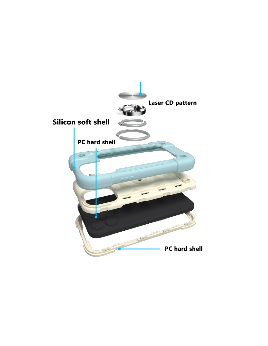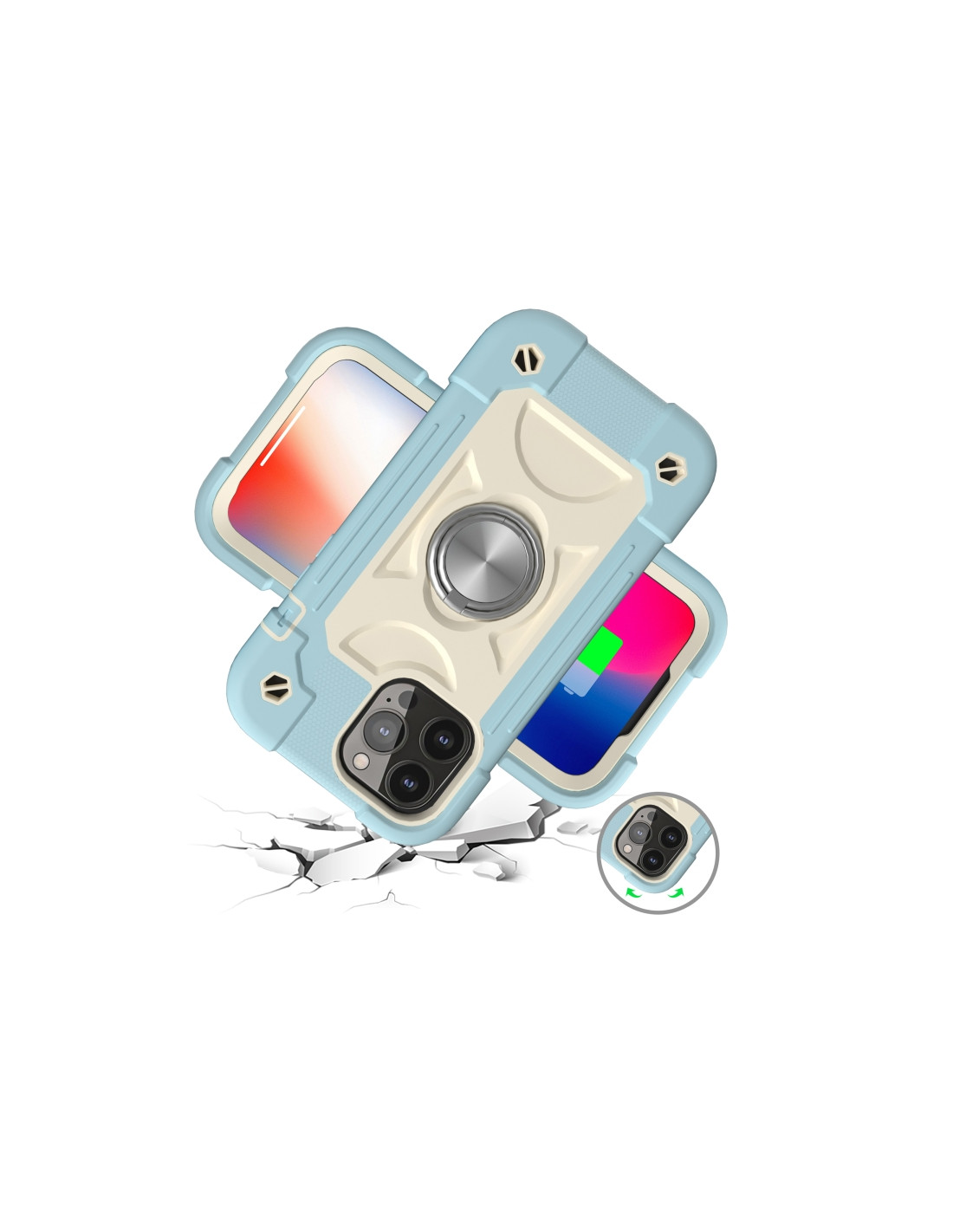 Cover antiurto per iPhone 13 Pro in silicone e PC con doppio anello. Protezione totale in colore avocado.