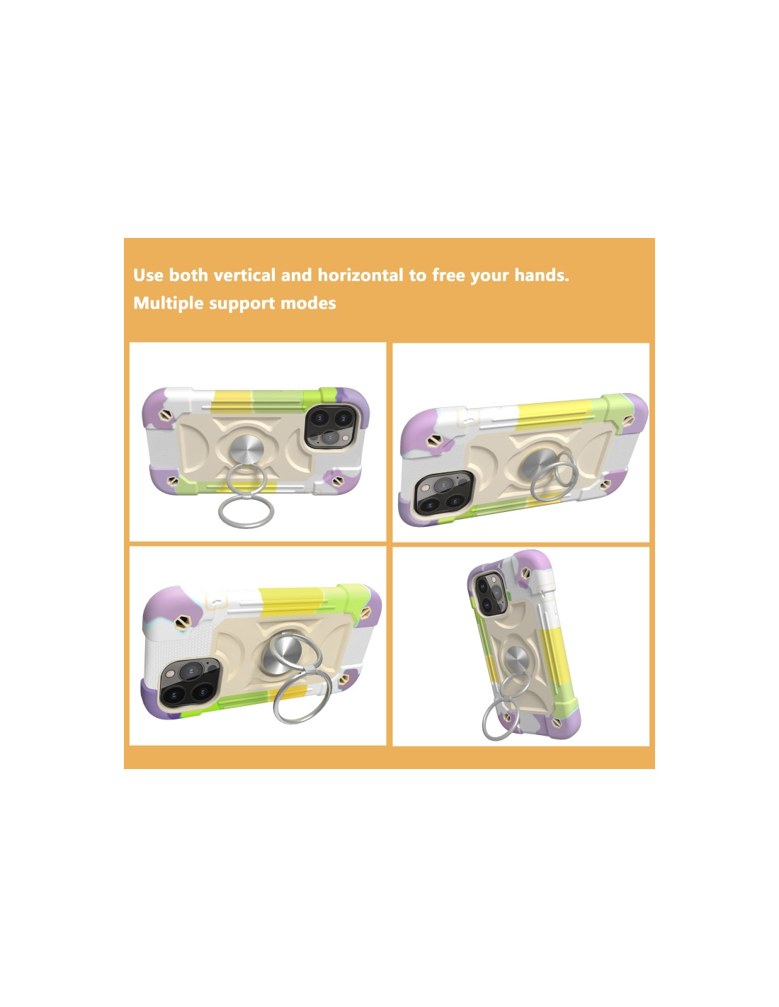 Cover antiurto per iPhone 13 Pro in silicone e PC con doppio anello. Protezione totale in colore avocado.