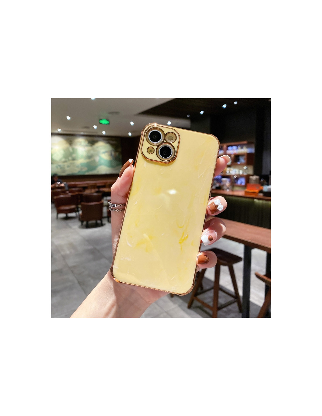 Cover iPhone 13 Pro con texture marmo e placcatura antiurto. Protezione robusta in TPU con design elegante.