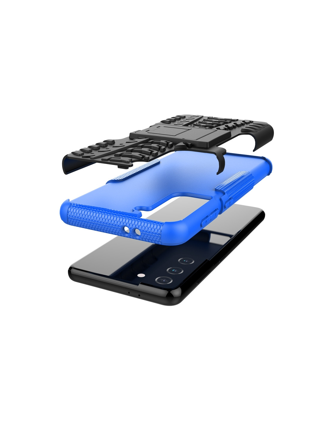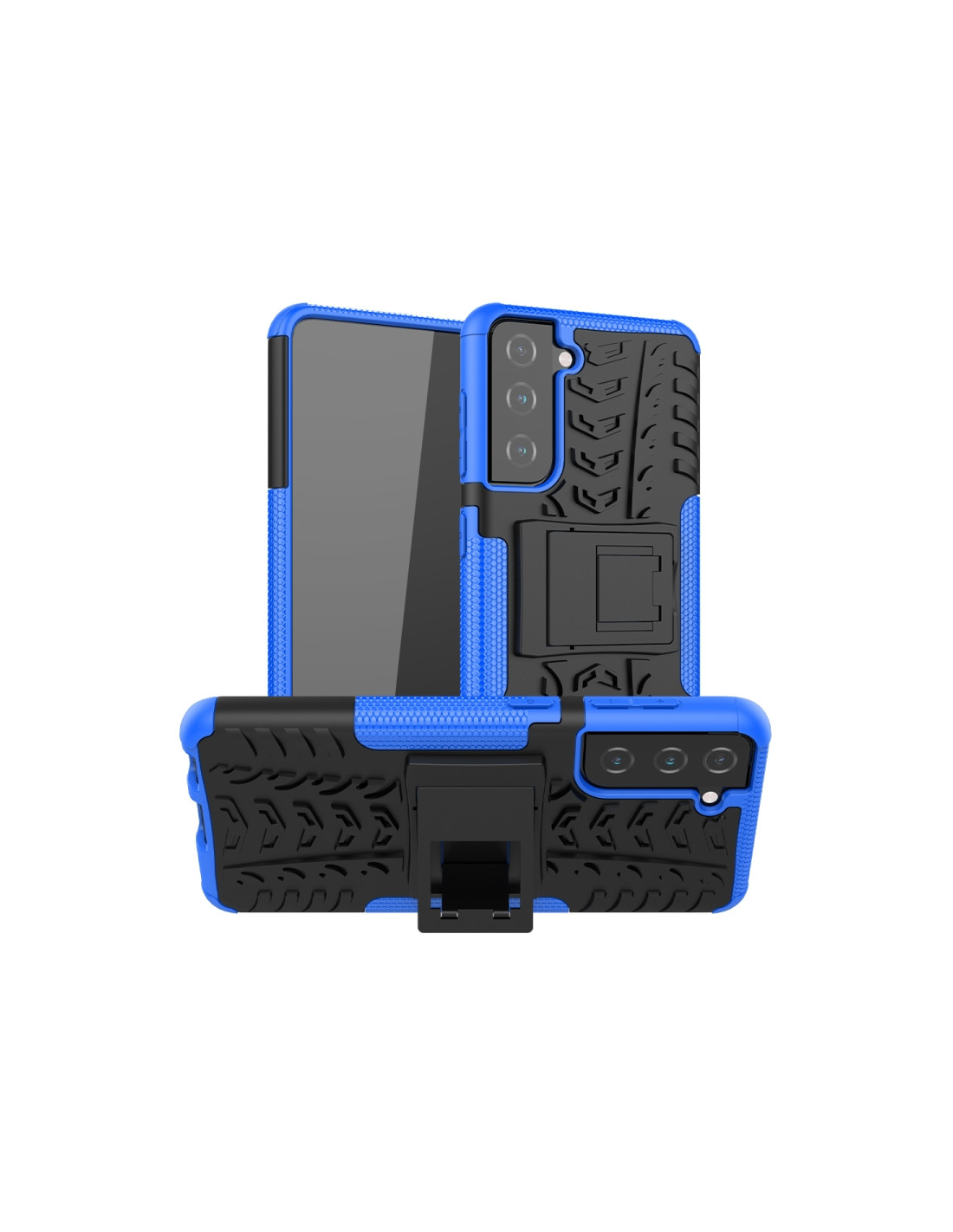 Cover antiurto per Galaxy S21 5G in TPU e PC con texture pneumatico e supporto integrato.
