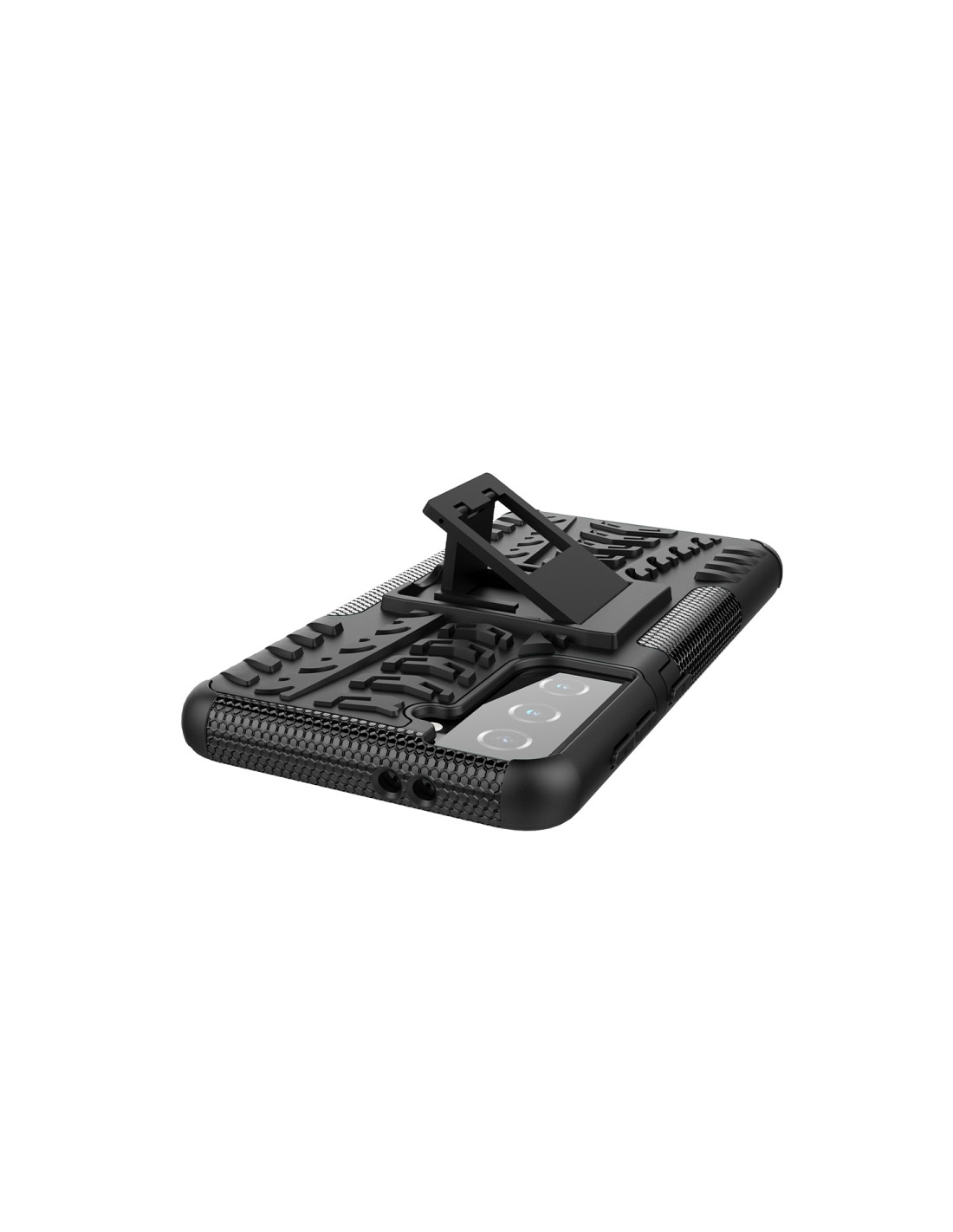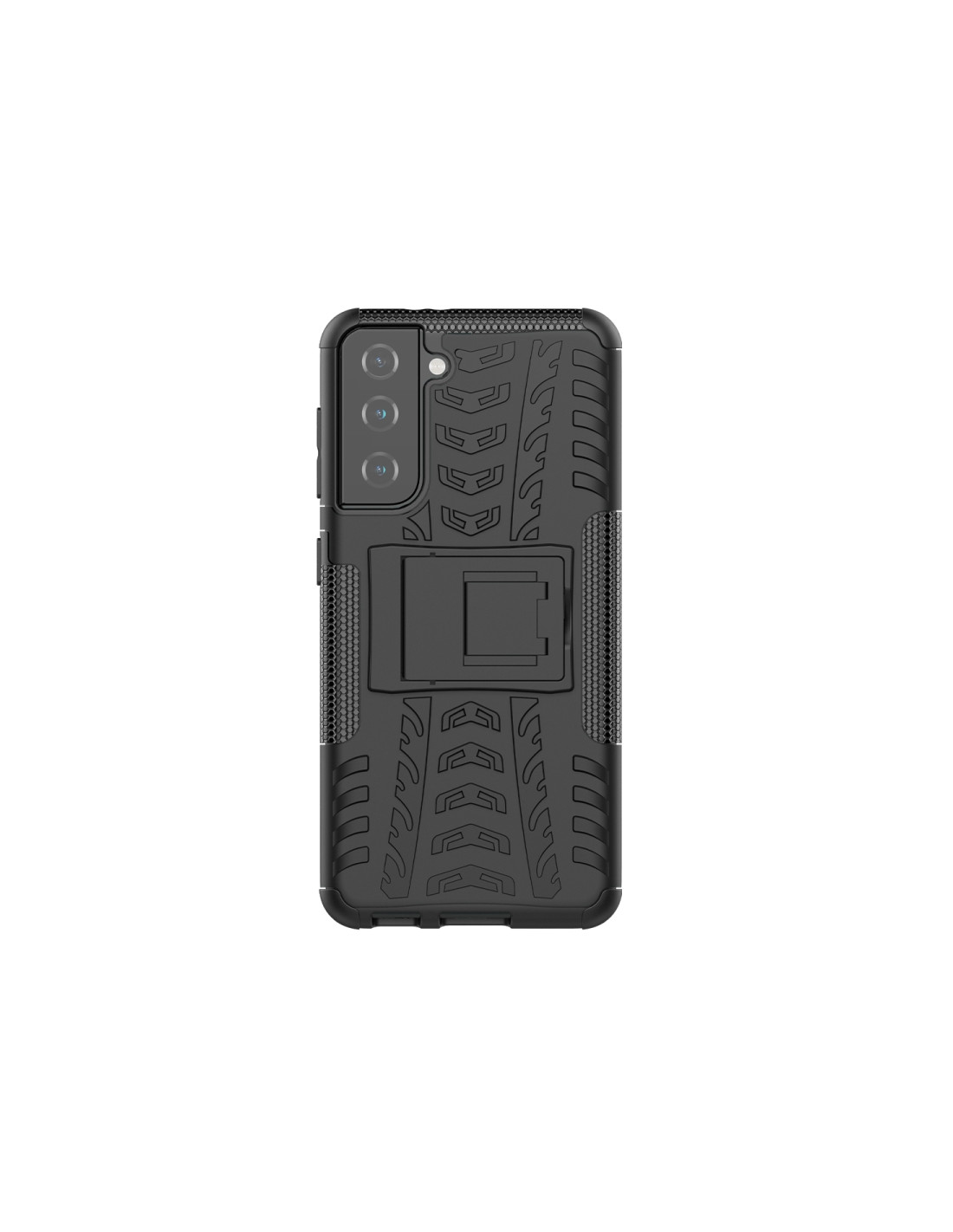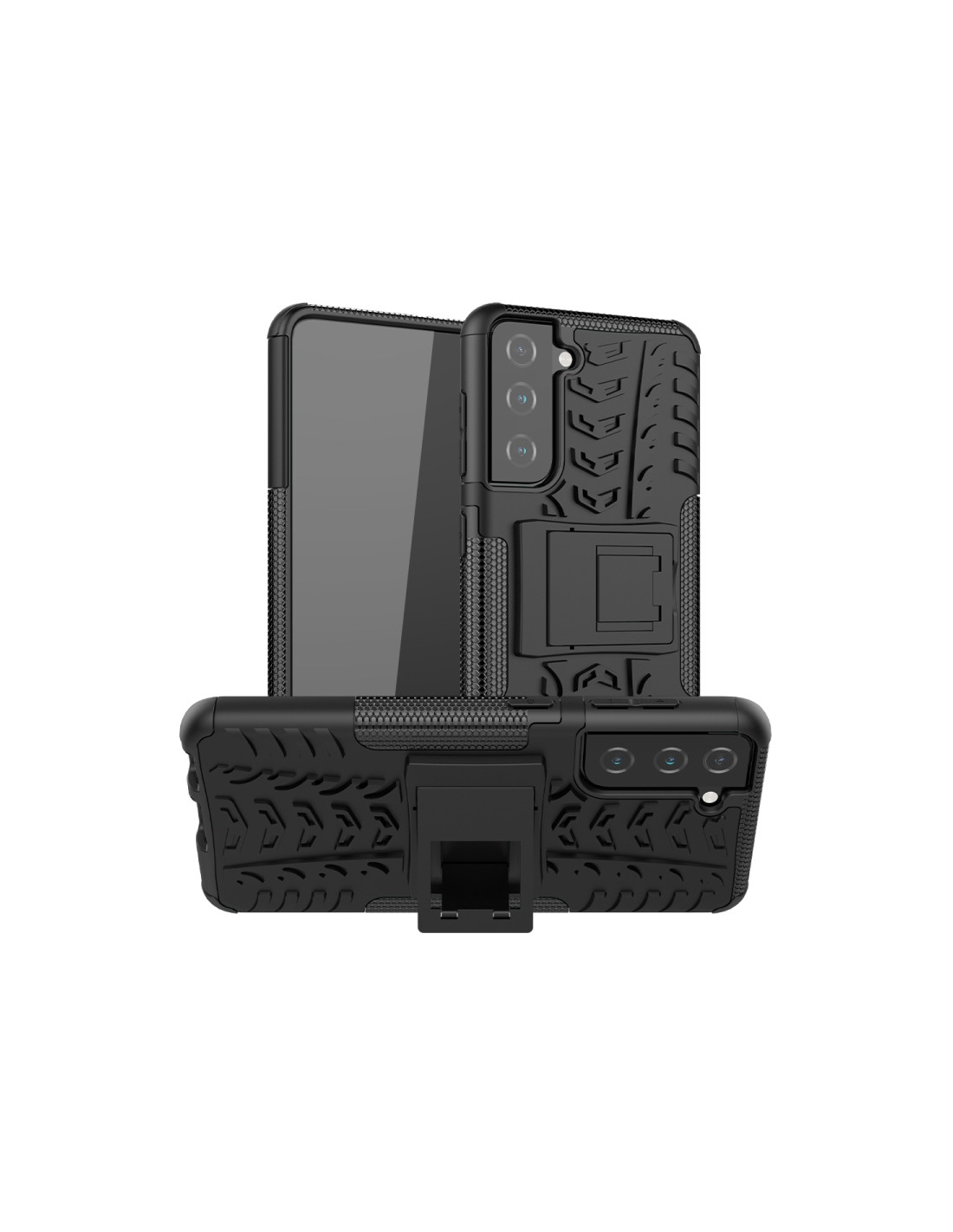 Cover antiurto per Galaxy S21 5G in TPU e PC con texture pneumatico e supporto integrato.
