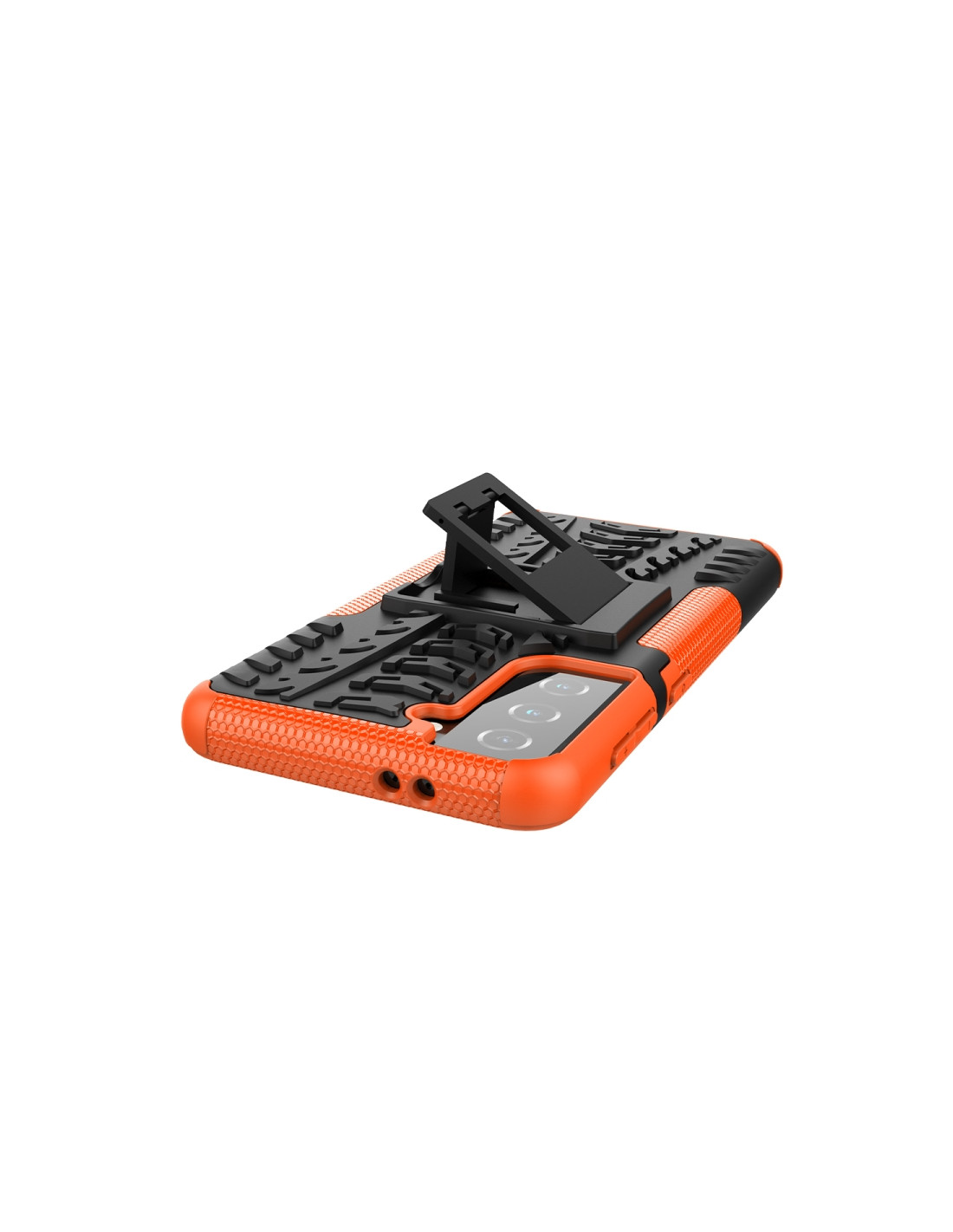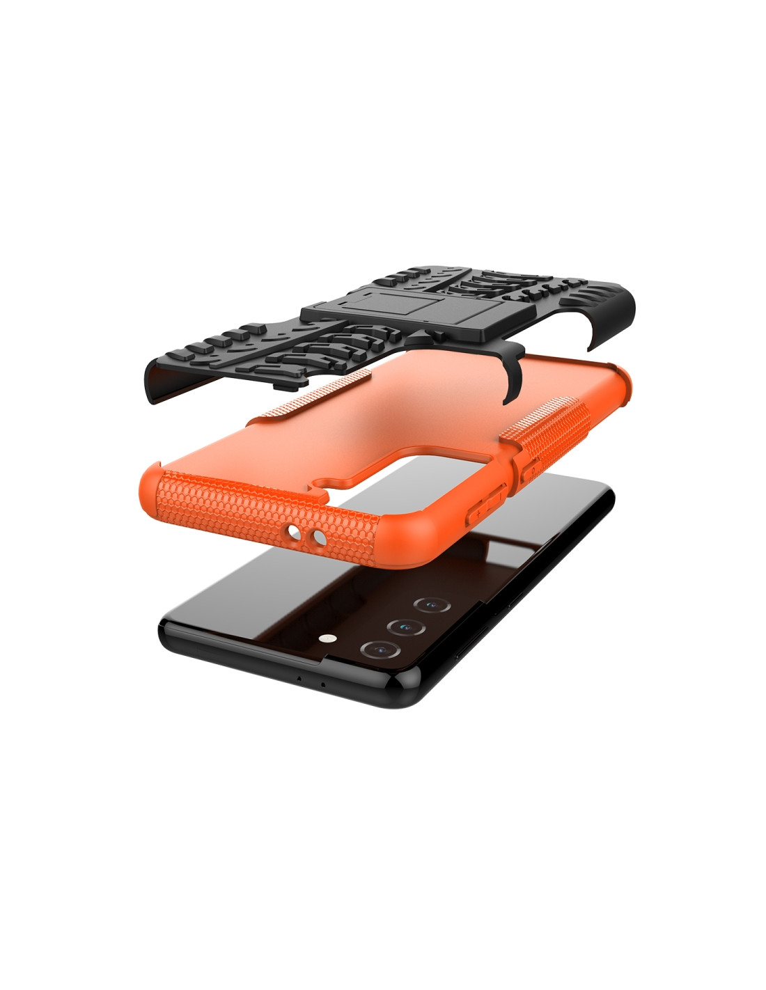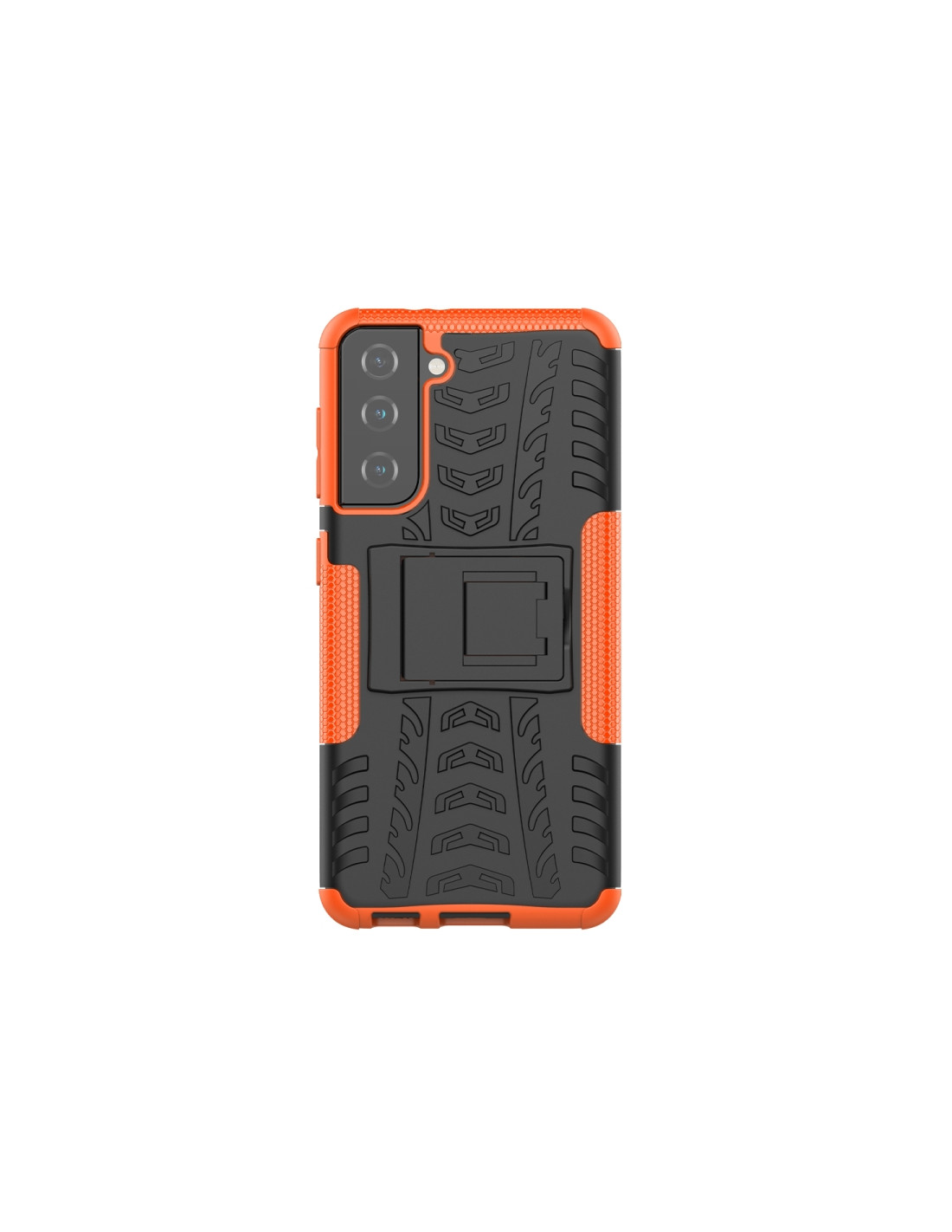 Cover antiurto per Galaxy S21 5G in TPU e PC con texture pneumatico e supporto integrato.