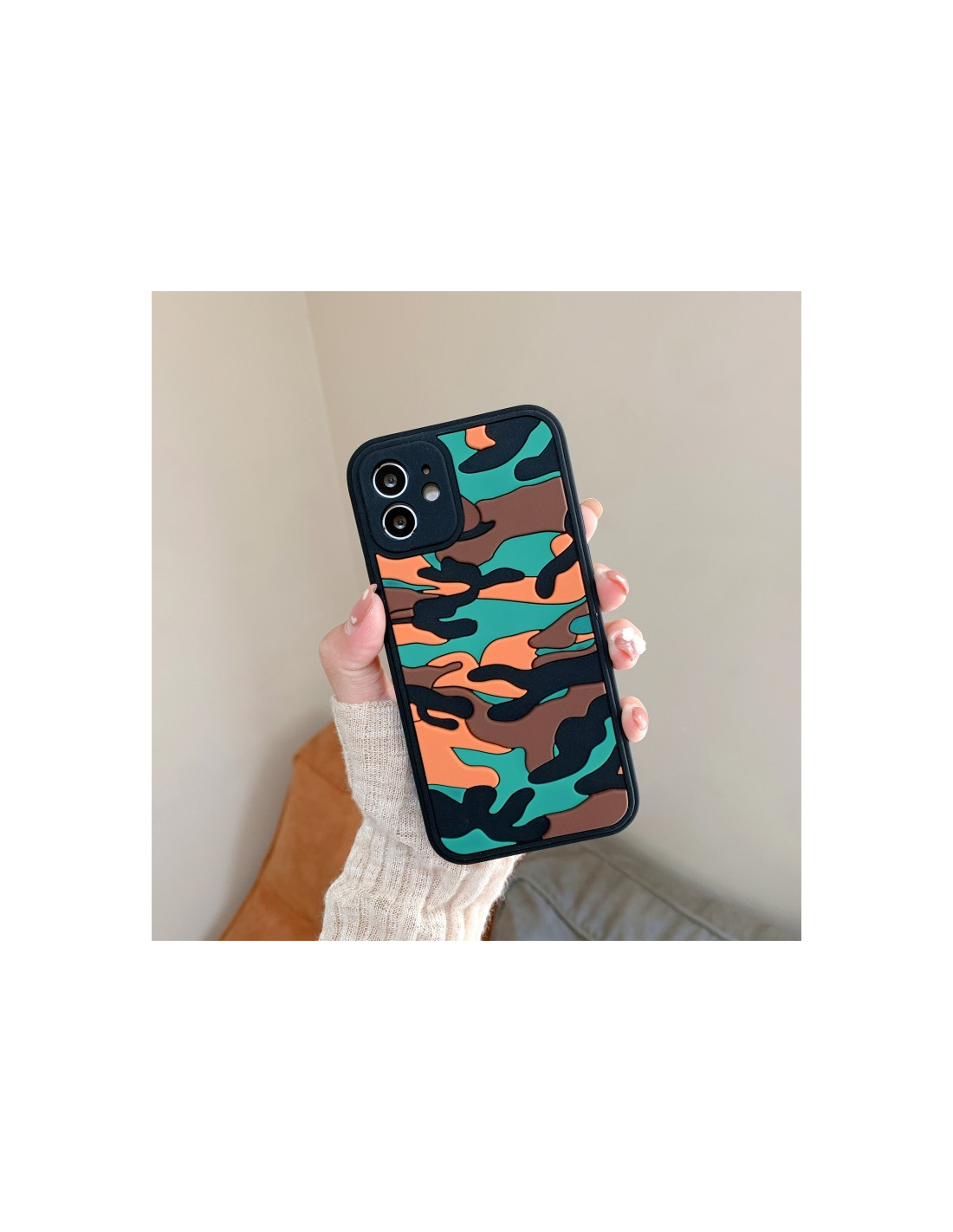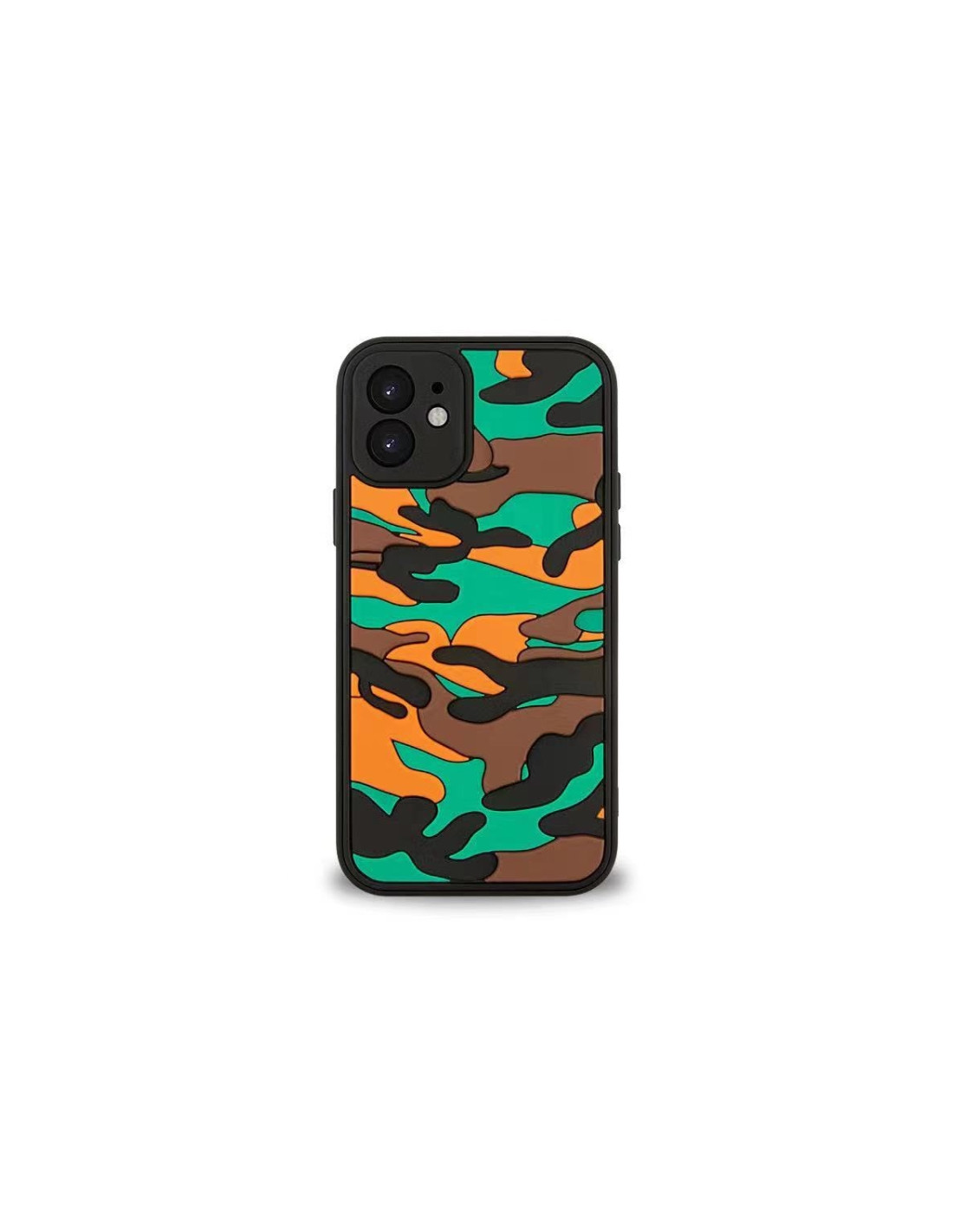 Cover iPhone 12 Pro in silicone con design nuvole mimetiche. Protezione antiurto e grip ergonomico.