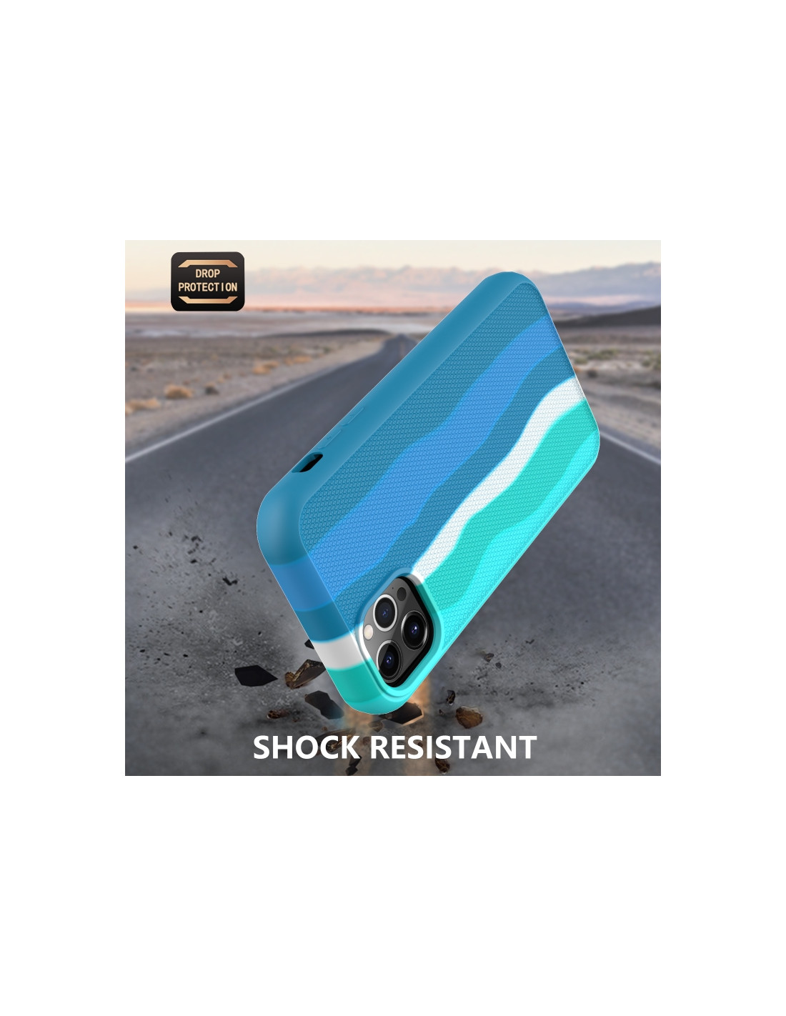 Cover iPhone 13 in silicone e PC antiurto con design arcobaleno verde. Protegge da urti, polvere e graffi.