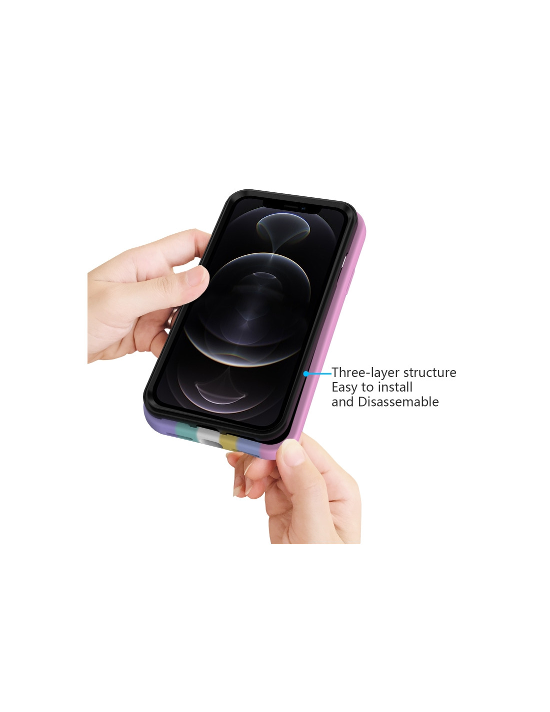 Cover iPhone 13 in silicone e PC antiurto con design arcobaleno verde. Protegge da urti, polvere e graffi.