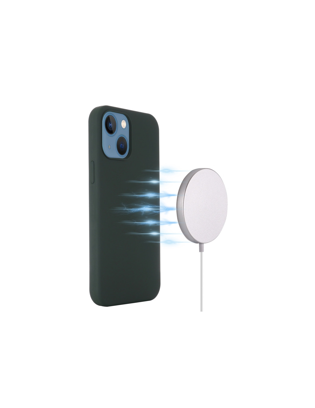 Cover antiurto in silicone per iPhone 13 con sistema MagSafe integrato. Protezione robusta e compatibilità magnetica.