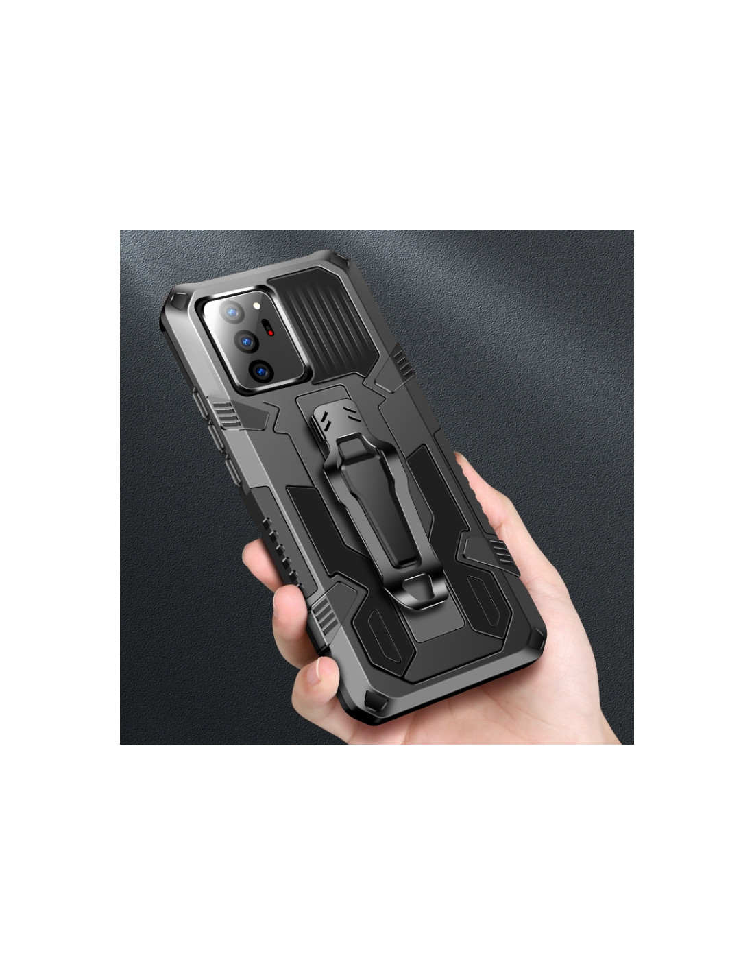SamsungProteggi il tuo Galaxy Note 20 Ultra con questa cover antiurto dall'eccezionale design Machine Armor Warrior. Realizzata in materiale PC + TPU, combina la rigidità del policarbonato con la flessibilità del TPU per un'armatura protettiva completa contro cadute e urti. Il design Machine Armor Warrior dona al tuo smartphone un'estetica aggressiva e moderna che non passa inosservata.