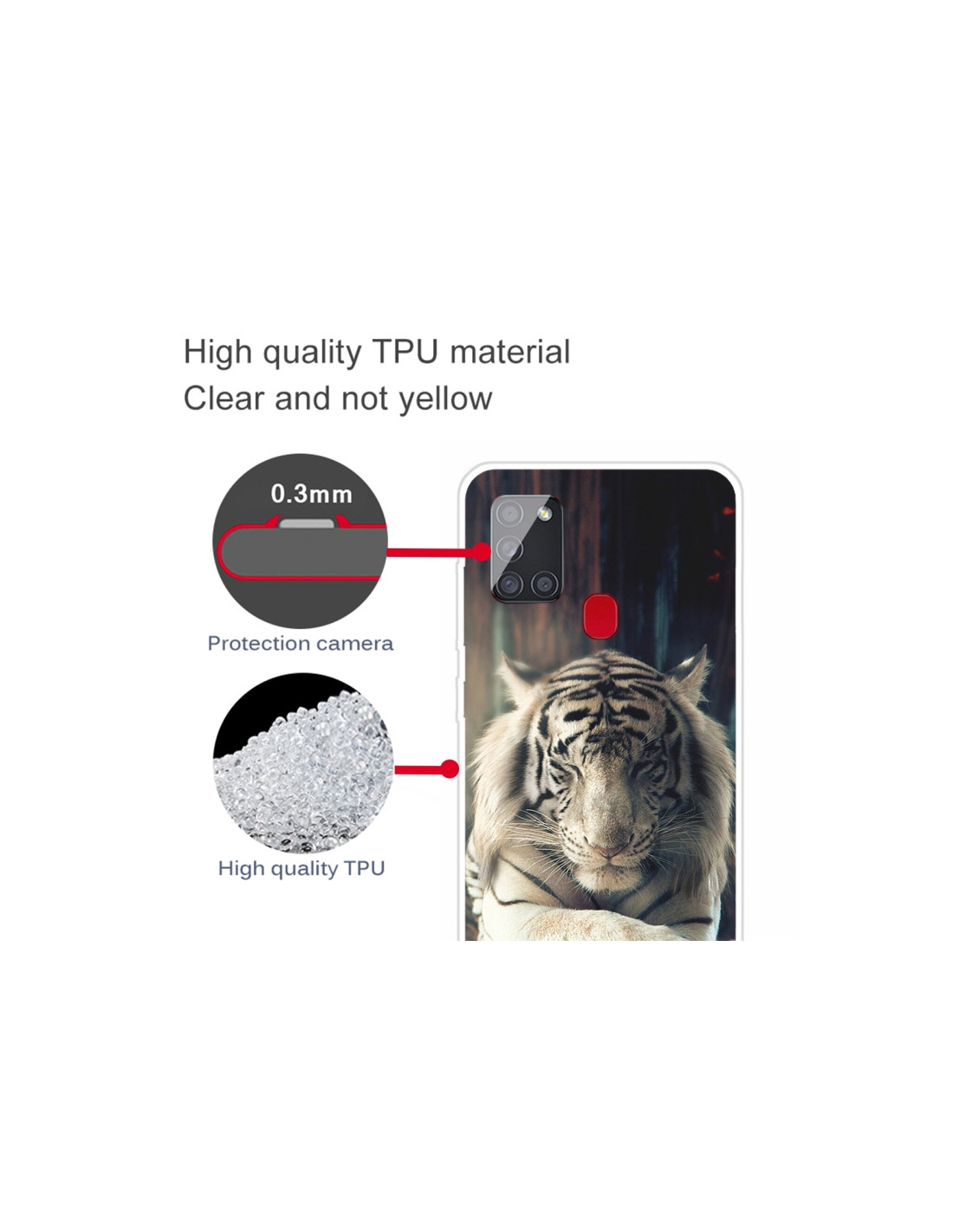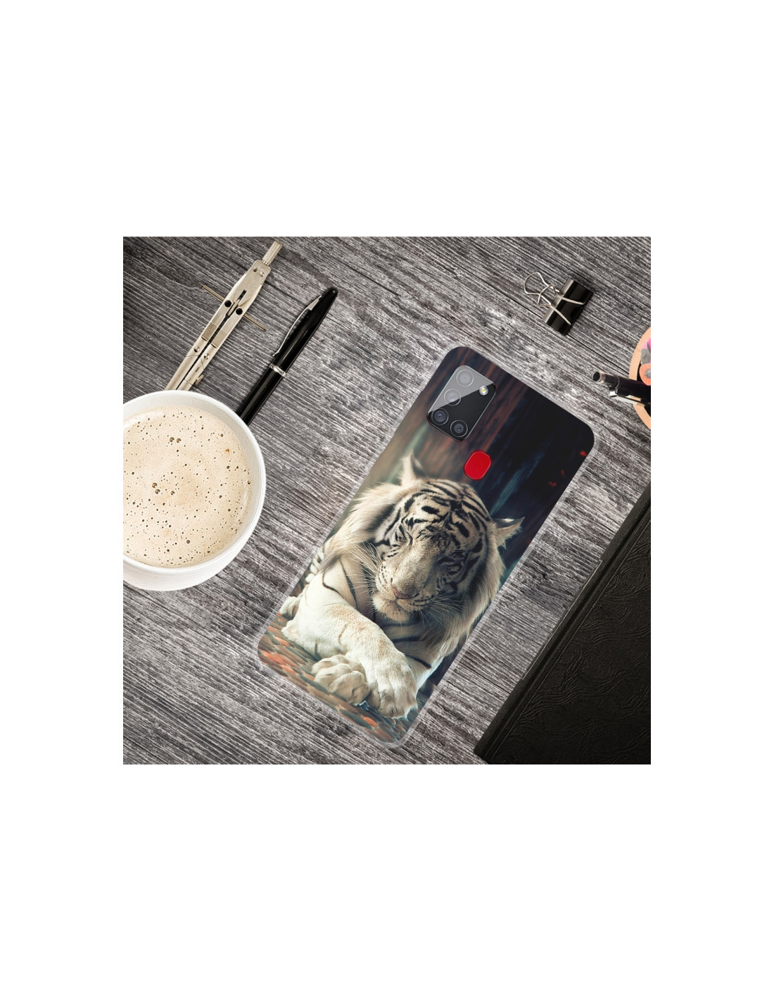 Cover antiurto in TPU per Galaxy A21S con design Tigre Bianca. Protegge da cadute e urti senza appesantire.