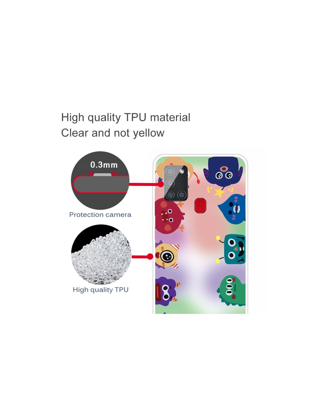 Cover Galaxy A21S TPU Antiurto Mostro Fluorescente Trasparente