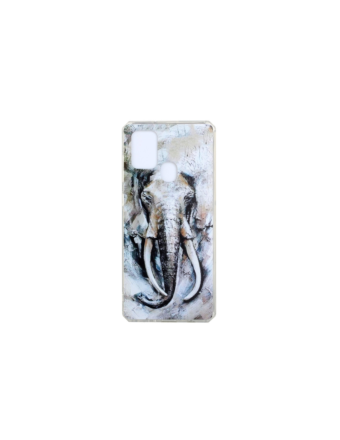 Cover antiurto Galaxy A21s in TPU con design pittura a olio elefante. Protezione e stile garantiti.