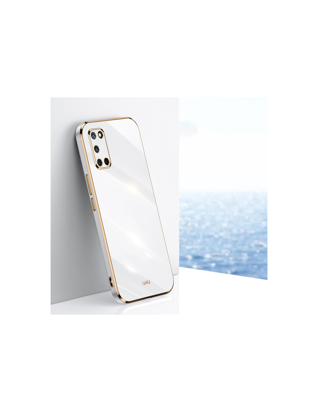 Cover antiurto in TPU per Oppo A52 con bordo placcato oro. Protezione robusta e design elegante.