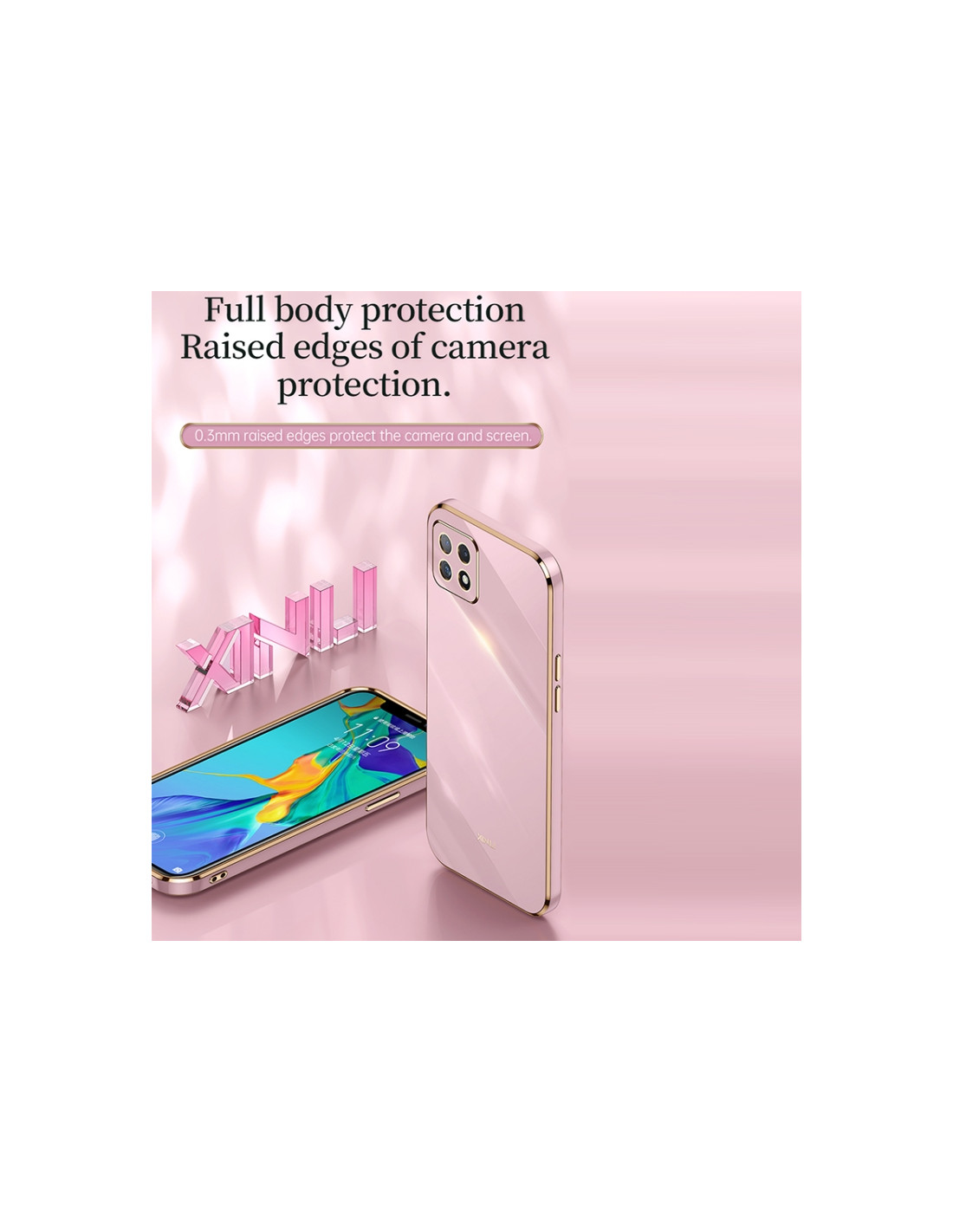La cover antiurto XINLI per OPPO A53 combina stile e protezione. Realizzata in TPU resistente, offre una difesa completa dai colpi e dalle cadute accidentali. Il design con bordi placcati in oro aggiunge un tocco elegante al tuo dispositivo, mentre la tecnologia 6D garantisce una protezione avanzata su tutti i lati.