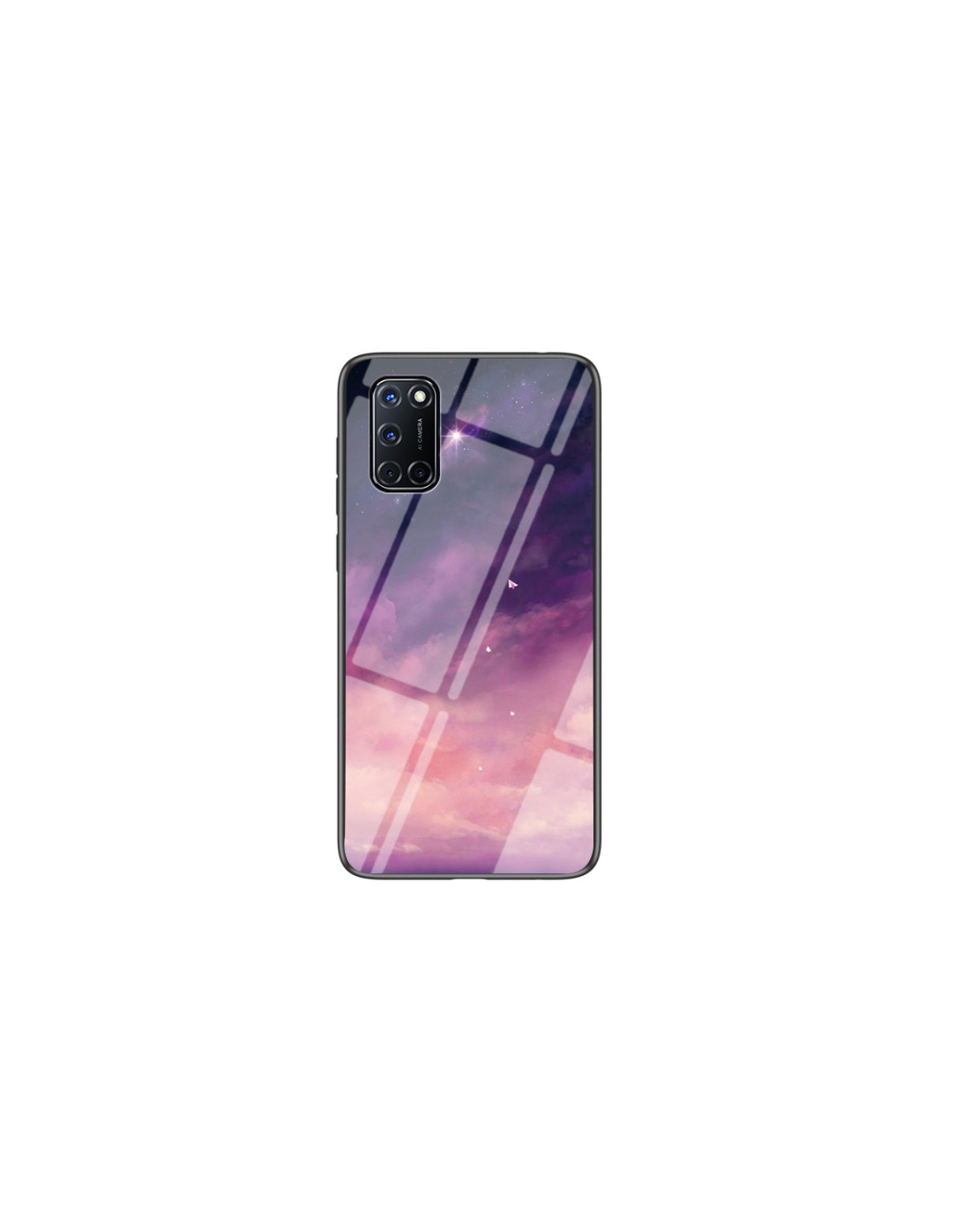 Cover antiurto per Oppo A52 con design Cielo Stellato. Protezione totale con vetro temperato e TPU.