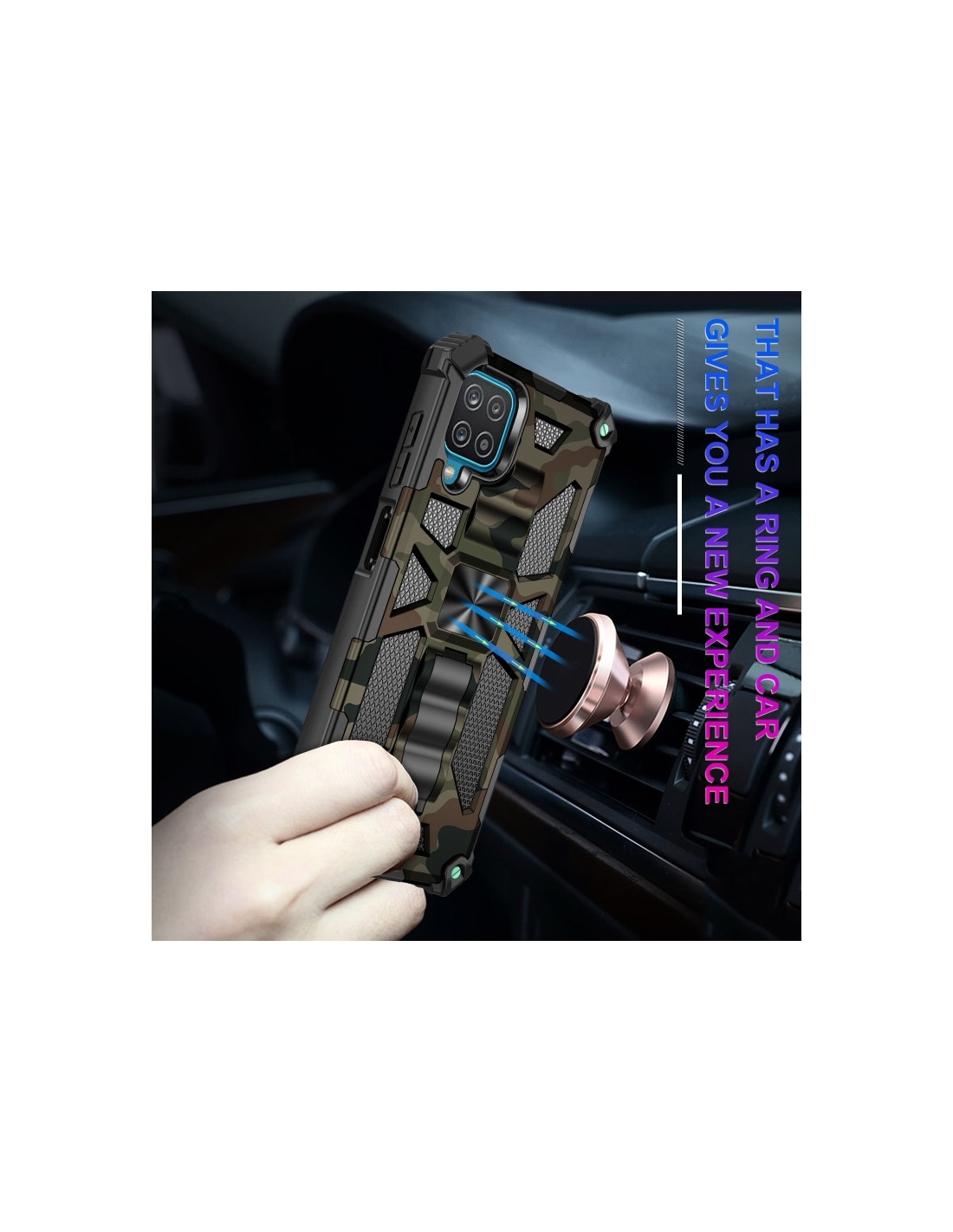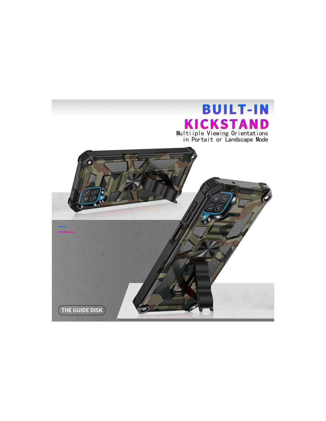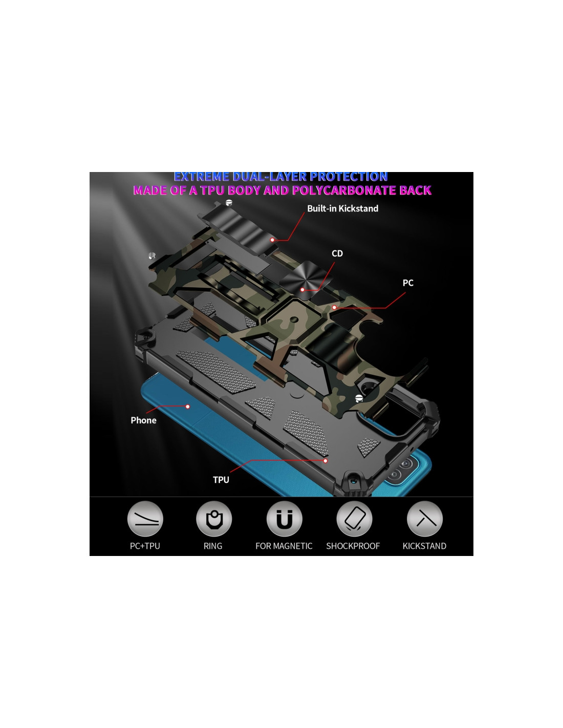 Cover antiurto Galaxy A22 4G in TPU + PC con design mimetico e supporto magnetico integrato.